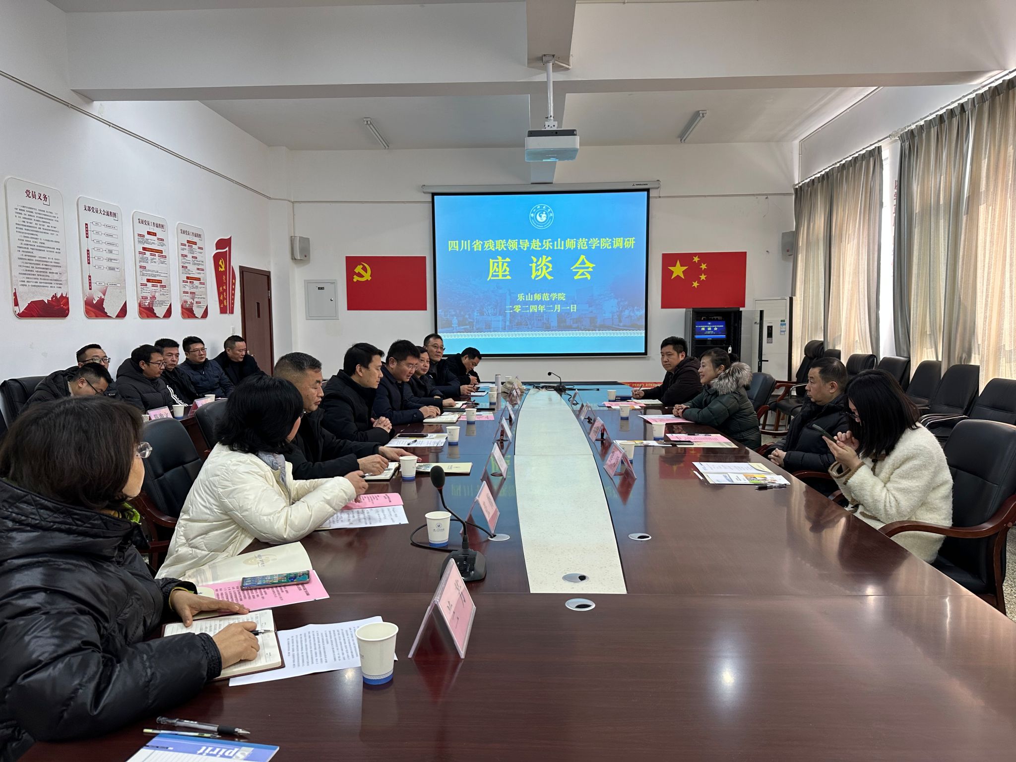 本网讯(文/杨燕 图/陈俊文、汪科、周丽岚) 2月1日,四川省残联党组成员、副理事长陈兰等一行4人来我校调研聋人足球项目,乐山市委常委、统战部部长席代金,乐山市残联党组书记、理事长谢世文等一行6人陪同调研。学校党委常委、副校长汪天飞,特殊教育学院、体育学院负责人等参与调研。上午11:00,调研座谈会在特A-408会议室举行。