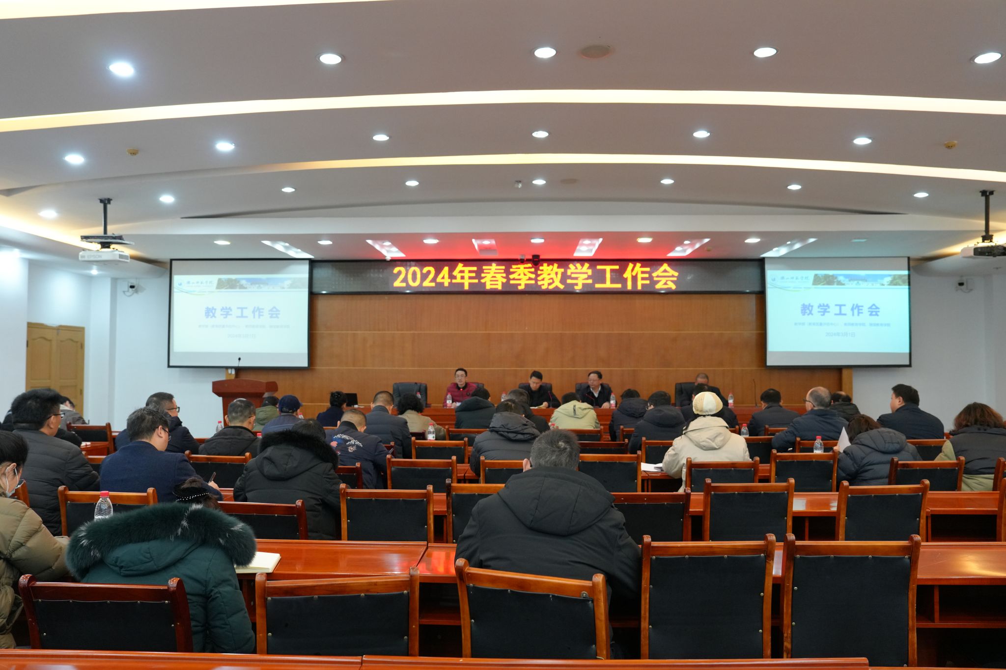 本网讯(文图/杨爽)3月1日上午,乐山师范学院2024年春季教学工作会在图书馆学术报告厅召开。党委常委、副校长汪天飞,教学部、教师教育学院、继续教育学院负责人,各教学院院长及分管教学副院长参加会议。会议由教学部部长龙述君主持。