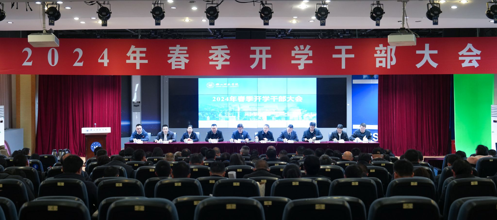 本网讯(文图/孟繁增、杨爽、梁晨)“一年春作首,万事行为先。”3月4日,我校召开2024年春季干部大会,总结学校2023年工作、部署2024年工作、传达学习上级的最新精神。校党委书记胡丹主持会议并作总结讲话。校党委副书记、校长刘进作2023年工作总结及2024年工作部署。校领导陈立志、彭尚源、陈范华、李朝晖、李方裕、汪天飞、江滔,校党委常委、组织部长佘万斌分别结合学校工作要点,作2024年重点工作谋划与思路说明。