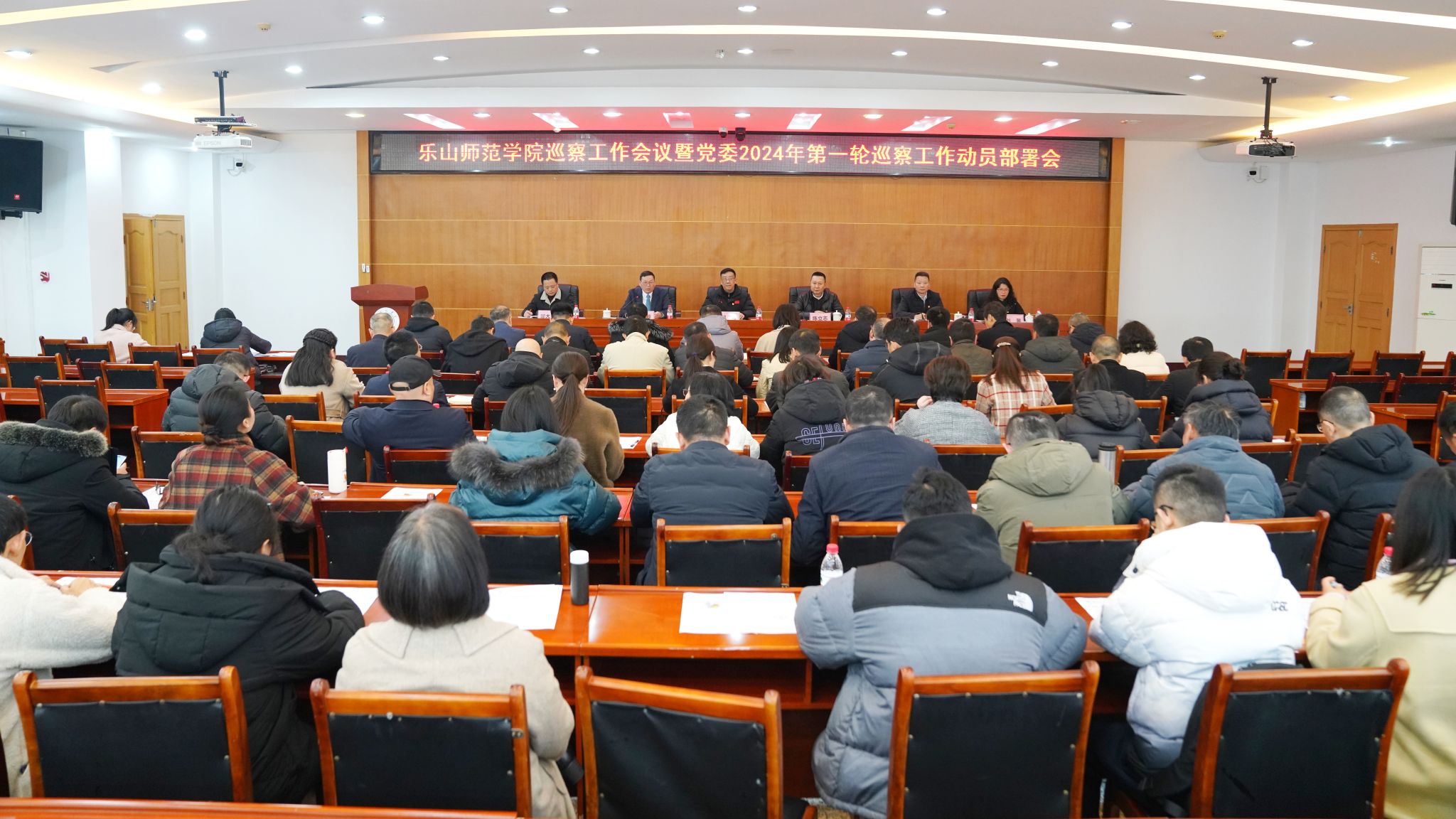 本网讯(文/许亚梅 图/梁晨)3月6日下午,学校巡察工作会议暨党委2024年第一轮巡察工作动员部署会在图书馆学术报告厅召开。党委书记、巡察工作领导小组组长胡丹,党委副书记、纪委书记、巡察工作领导小组常务副组长彭尚源,党委副书记、工会主席、巡察工作领导小组副组长陈立志出席。会议由彭尚源主持。