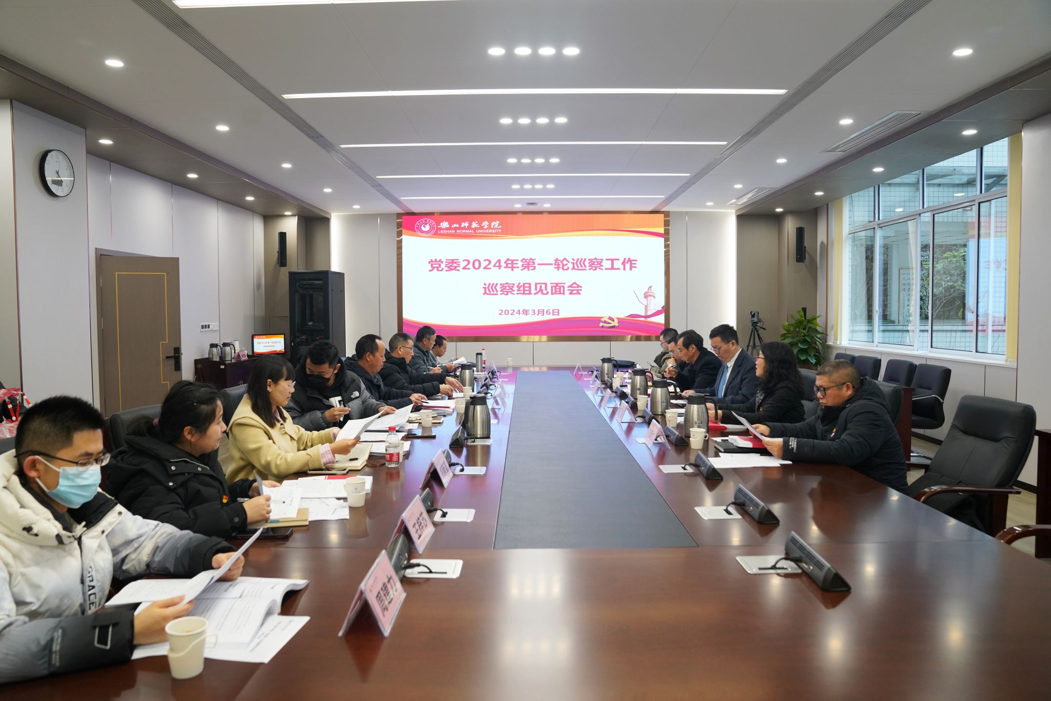 3月5日上午,学校党委书记、巡察工作领导小组组长胡丹出席巡察组组长见面会,党委副书记、纪委书记、党委巡察工作领导小组常务副组长彭尚源主持会议,巡察工作办公室主任、巡察工作领导小组成员刘馨及各巡察组长、副组长参加会议。