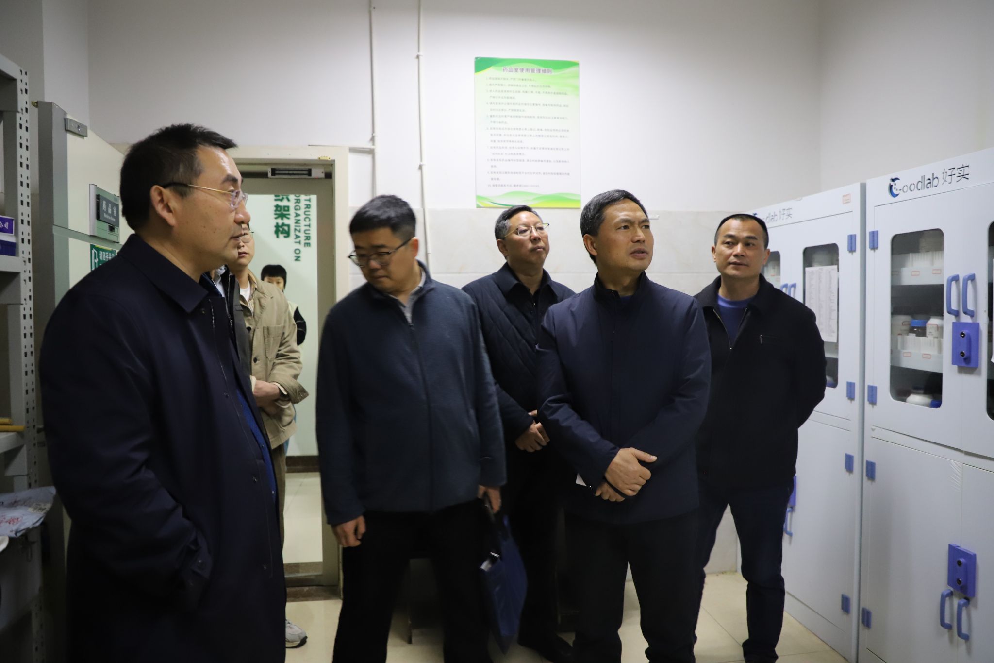 在检查过程中,罗春彦巡视员一行首先听取了实验室主任杨瑶君教授关于实验室安全防护以及科研成果的详细汇报,了解了实验室的运行状况、安全卫生管理制度以及应急预案等方面的情况。随后,对实验室的消防设施、安全防护设施、危化品储存和管理、废弃物处理等关键环节进行了仔细检查。在检查期间,对药品室负责人龙文聪老师进行电话询问,了解药品室的危化品管理、通风系统以及安全柜管理。