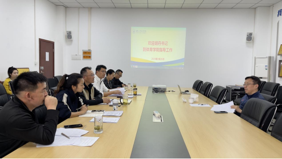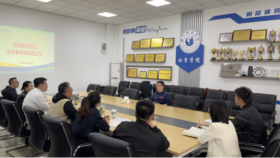 本网讯(文/胡天慧 图/裴庚)3月26日,校党委书记胡丹到体育学院调研指导工作,体育学院全体班子成员、第二学生党支部书记杜小敏、学生党员倪鑫参加了会议。