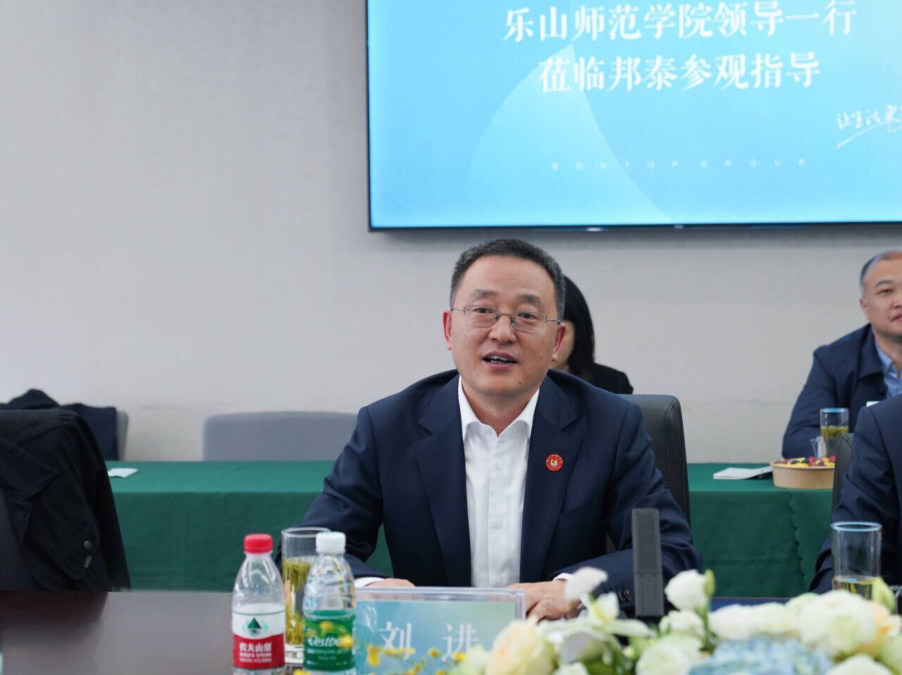 党委书记胡丹代表学校对校友企业——四川邦泰集团一直以来在学校事业发展、人才培养、毕业生就业等方面工作给予的支持表示感谢。他表示,我校“走出来”与企业加强合作,旨在为2024年毕业生拓宽就业渠道,寻找优秀的企业搭建合作平台,胡丹希望双方在已有的合作基础上,进一步拓宽合作的广度和深度,学校将不断发挥人才和科技优势,为优秀企业输送人才力量,构建学校就业育人工作长效机制。