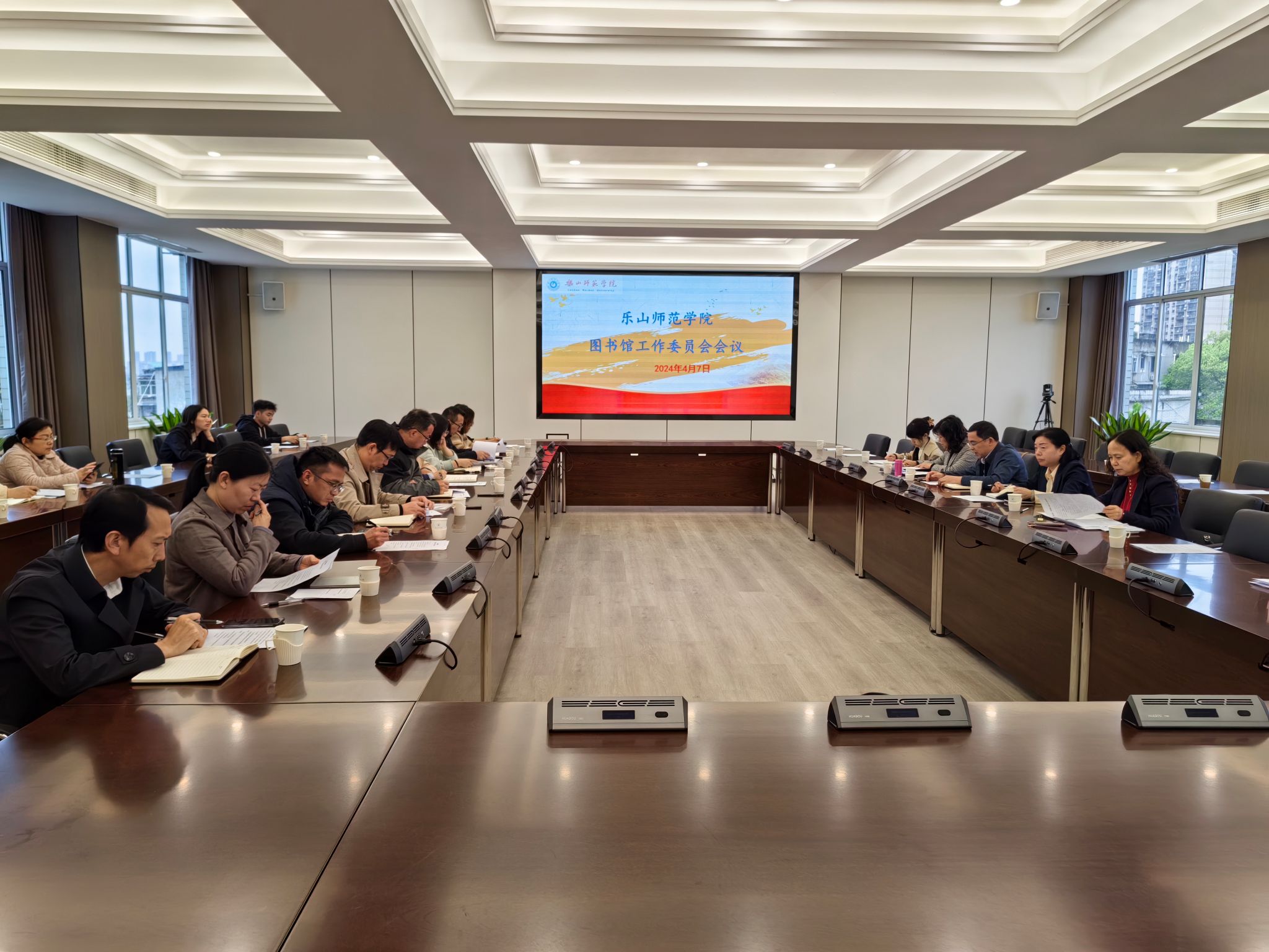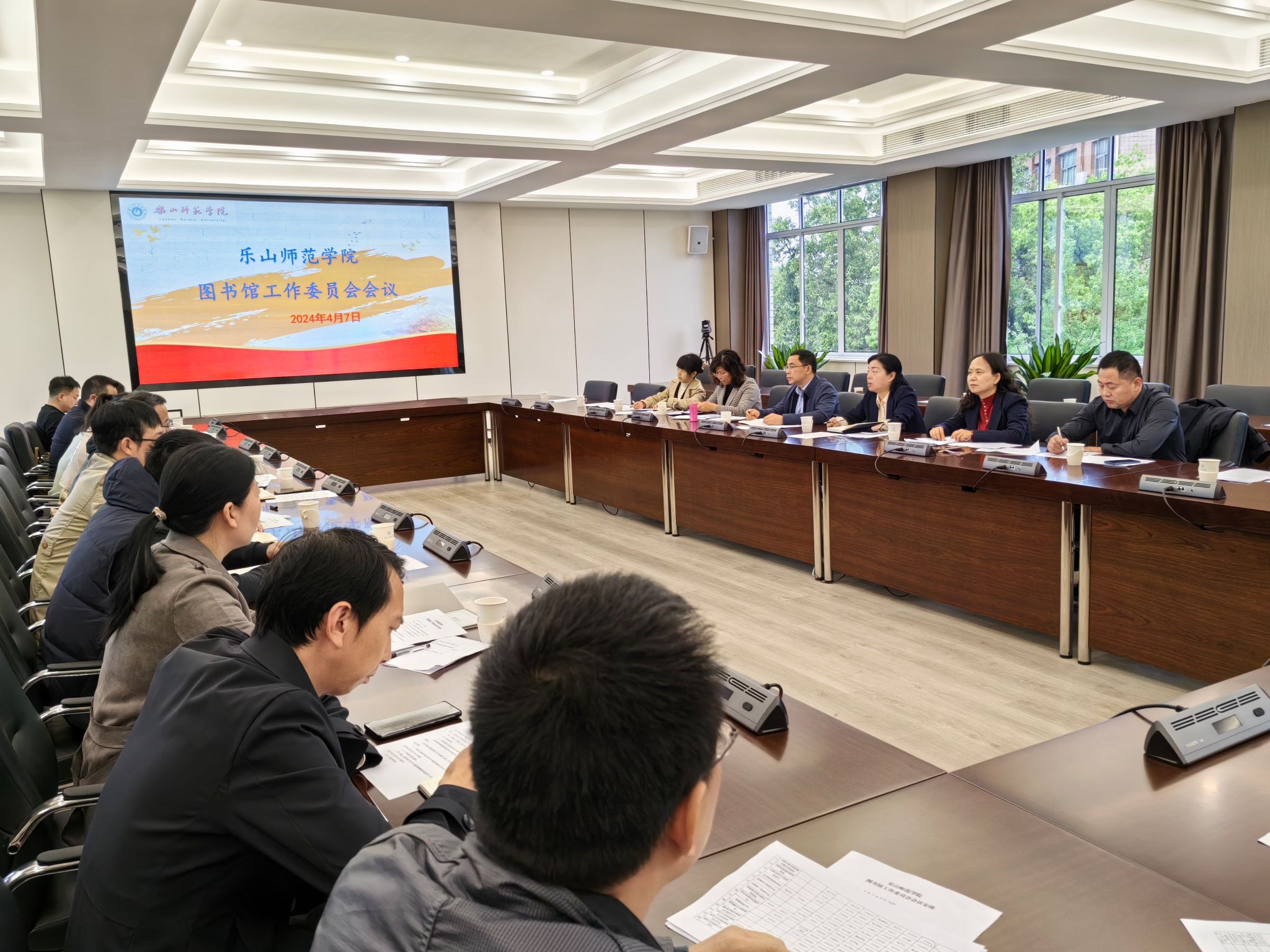 本网讯(文/黄尚清 图/章宇)2024年是学校“对标竞进提质年”,为更好践行学校“113”高质量发展思路,充分发挥图书馆的“人才培养主战地”作用,4月7日,乐山师范学院图书馆工作委员会会议在弘毅楼第一会议室召开。校党委常委、副校长、学校图书馆工作委员会主任陈范华,图书馆工作委员会委员(含教师代表、学生代表),图书馆工作委员会办公室人员以及图书馆其他相关人员参加了会议。会议由图书馆、档案馆直属党支部书记张波主持。