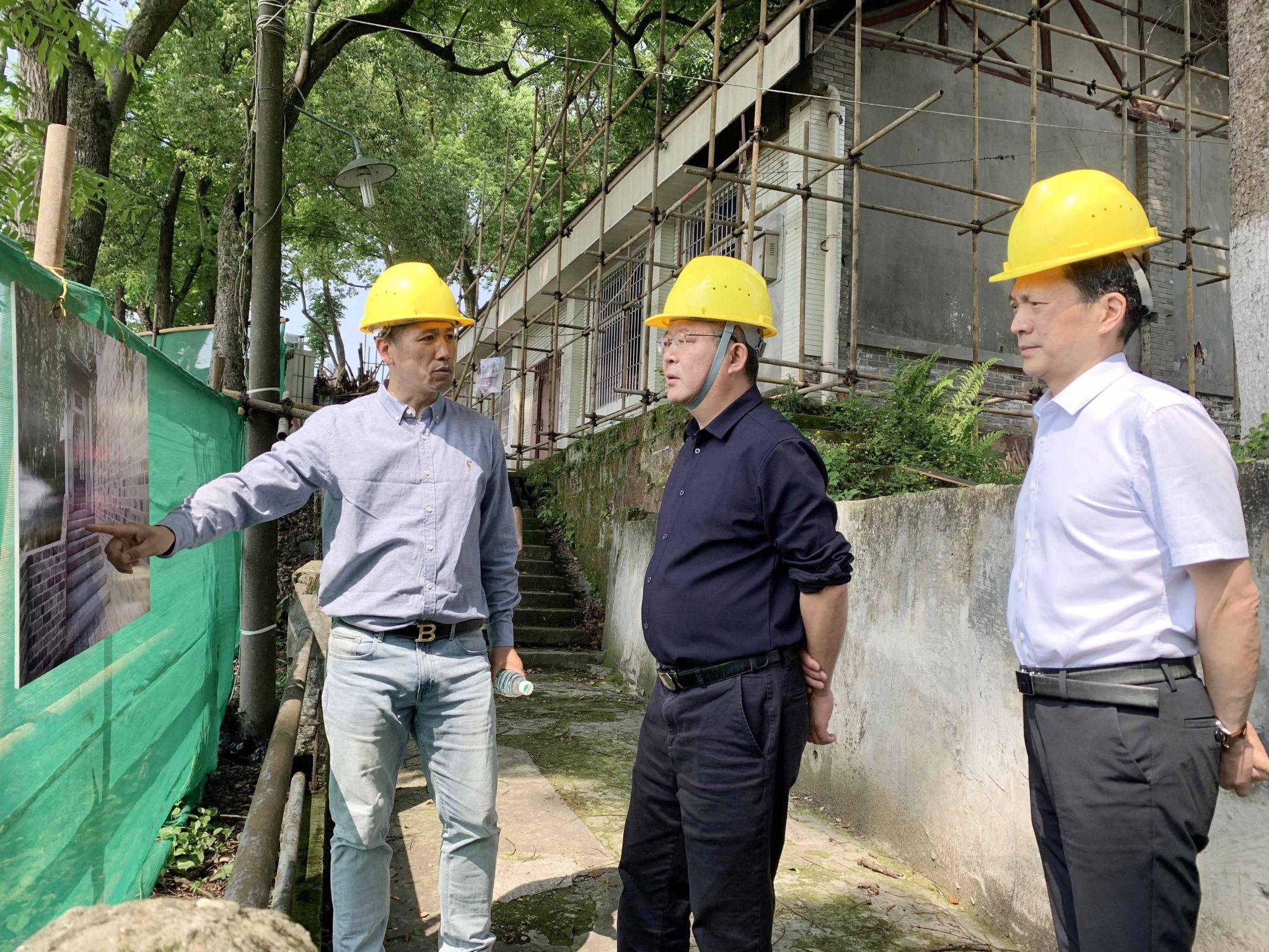 陈鲁在基建处和施工单位陪同下来到北斗山工地实地查看,宋天华介绍了北斗山灰楼C级危房维修加固工程的基本情况,着重介绍了灰楼的历史、保护与修缮、改造后的利用。随后,陈鲁一行还到学生公寓九幢考察了学生住宿现状。