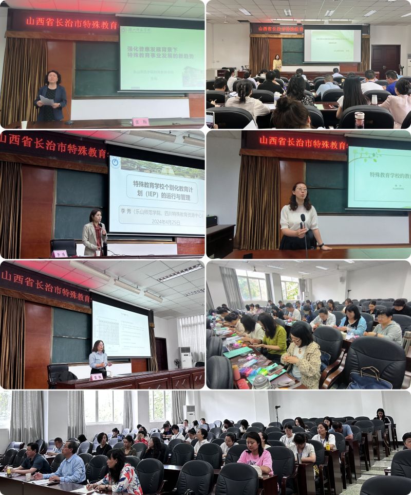 本网讯(文/周波 图/黄嫣、王辣、刘秋池、李沁兰等) 4月22日-26日,山西省委托培训项目-长治市六所特殊教育学校教师专项能力提升培训班在我校成功举行。本次培训历时5天,主要包括6场专题培训讲座,到乐山市特校和成都市成华区特校开展一天半的沉浸式、体验式学习,到我校特殊教育学院重点实验室和儿童康复中心开展为期半天的观摩学习。