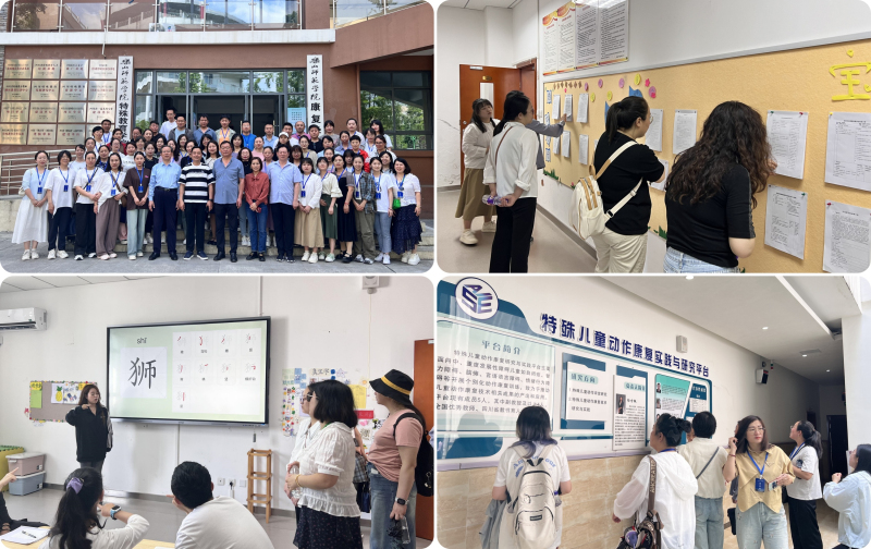 4月25日下午,培训班全体学员先后到学校特殊教育大楼D栋、A栋,现场参观了我校特殊教育办学的实验、实训设施设备,教学、科研环境,教学、“三习”运行态势等。在学校特殊需要儿童教育康复中心,他们观摩了6个儿童康复训练小组的个训课堂,了解了该中心在特教师资、康复专业技术人员培养中的功能和作用。在特殊教育语言智能四川省哲学社会科学重点实验室,感受了我校推进普特融合、信息技术与特殊教育融合的做法、优势和取得的初期成果。参观中,两栋大楼门厅外墙近30个上墙的牌子,楼内走廊的文化墙展示,学院分特教师资、康复专业技术人才、残疾人职业人才3类人才培养的功能分区与布局等,加深了学员们对我校获得的“一六十四四一”特殊教育事业发展平台的印象,强化了他们对学校特殊教育办学优势和特色的理解。他们表示,学校特殊教育办学有历史、有实力、有优势、有特色、有影响、有美誉度,是他们学习的榜样。
