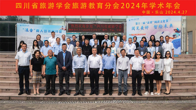 本网讯(文/郭剑英、黄鑫垚 图/王玲玲)4月27日,由四川省旅游学会、四川省旅游管理教学指导委员会指导,四川省旅游学会旅游教育分会主办,乐山师范学院旅游与地理科学学院、乐山旅游职业教育集团承办,四川旅游发展研究中心协办的四川省旅游学会旅游教育分会2024年学术年会在乐山师范学院顺利召开。本次年会以“建设教育强省培养四川服务人才”为主题,旨在汇聚旅游教育界的专家学者,共同探讨旅游学科专业建设、教育教学改革、人才培养的新模式和新路径。来自四川省文化和旅游厅、四川省旅游学会、国家图书馆出版社、乐山市教育局、乐山市文化广播电视与旅游局等单位的领导、省内外院校旅游方面的专家学者及乐山师范学院师生代表100余人参加了会议。开幕式由乐山师范学院旅游与地理科学学院党委副书记、院长郭剑英教授主持。