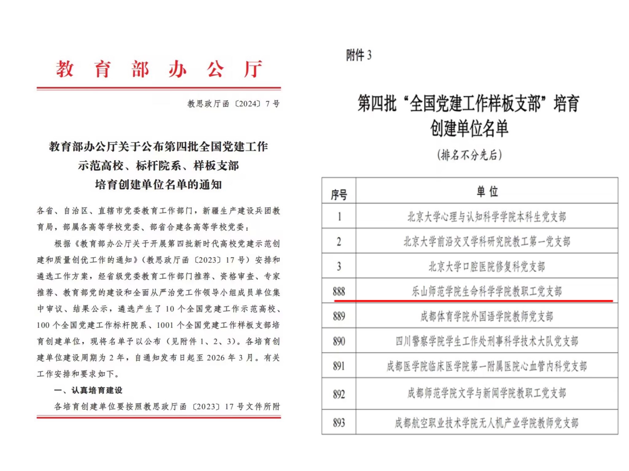 本网讯(文/杨爽 图/生命科学学院)近日,教育部公布了第四批新时代高校党建示范创建和质量创优工作遴选结果,我校生命科学学院教职工党支部入选第四批“全国党建工作样板支部”培育创建单位,实现了基层党建工作的重要突破。