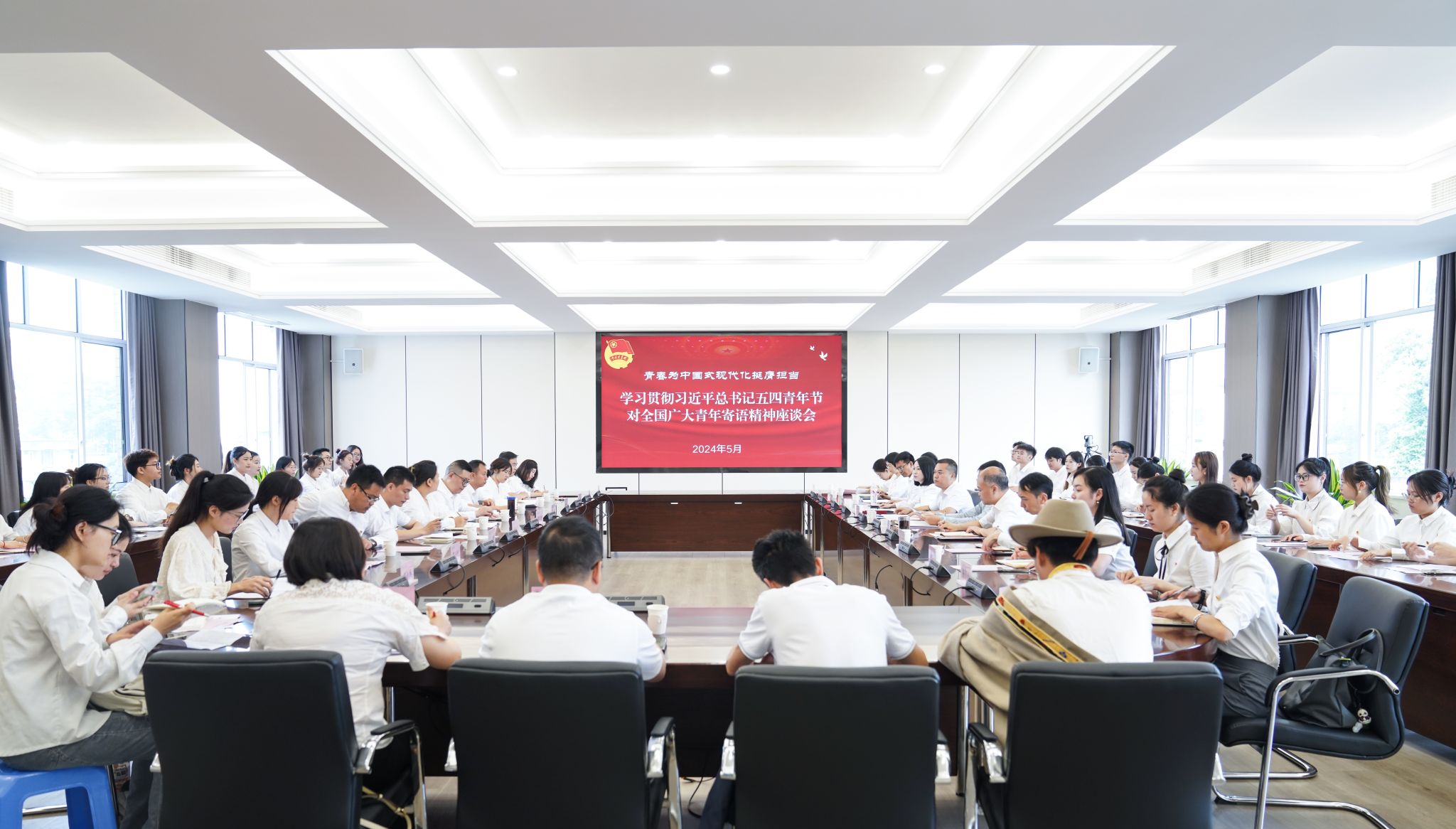 为深入学习习近平总书记五四重要寄语,牢记习近平总书记对青年一代健康成长、建功立业提出的希望要求,5月7日,我校举行学习贯彻习近平总书记五四青年节对全国广大青年寄语精神座谈会。党委常委、副校长李朝晖,党委常委、党委宣传部部长杨锐,党委学生工作部部长黄显刚,团委书记李东,美育教育中心专职副主任、团委副书记翟雅媛,各教学院分团委书记和辅导员,校团委全体人员,部分优秀团员青年参加座谈会。座谈会由校团委副书记余雨懁主持。