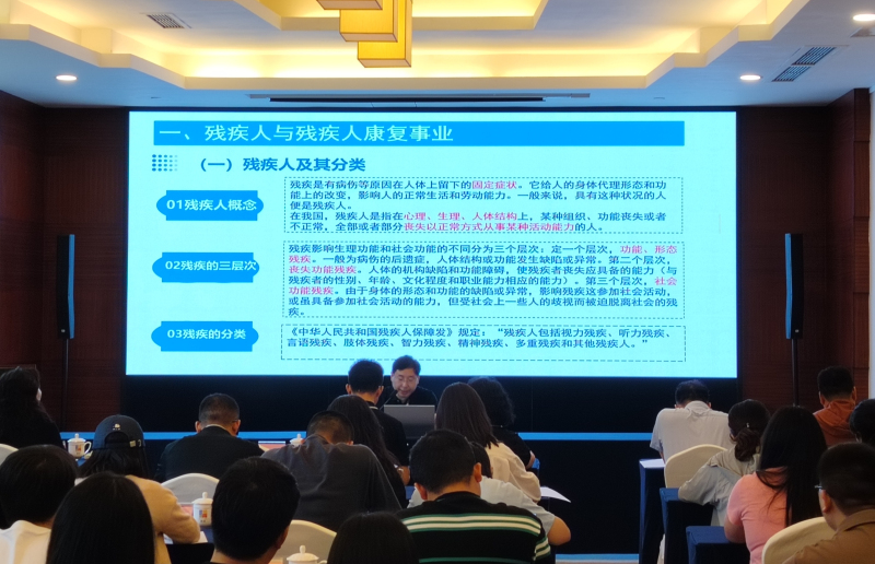开班仪式结束后,全体学员进行了合影留念。随后聆听了由罗增永主讲的“四川残疾人康复事业现状与展望”专题讲座。