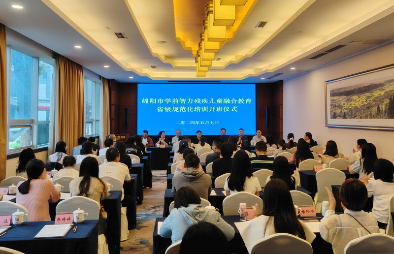 本网讯(文/杨欣悦、李晓畅 图/杨欣悦) 5月7日,绵阳市学前智力残疾儿童融合教育省级规范化培训班开班仪式在绵阳市举行。本次培训是经四川省残联批准,由绵阳市残联委托我校建设的四川省残联系统康复专业技术人员(智力类)省级规范化培训基地组织实施的培训。四川省残联康复处处长罗增永,绵阳市残联理事长曾明波、副理事长简文峰,我校继续教育学院院长杨小川、特殊教育学院院长张梅,组织本次培训的校地有关领导、工作人员,以及来自绵阳市各县(市、区)的50名学员等参加了开班仪式。开班仪式由我校特殊教育学院党委书记刘宗泉主持。