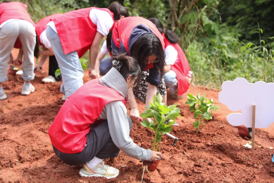 启动仪式结束后,各学院学生代表共同参加了“行知•五感花园”劳动教育实践基地培苗活动。