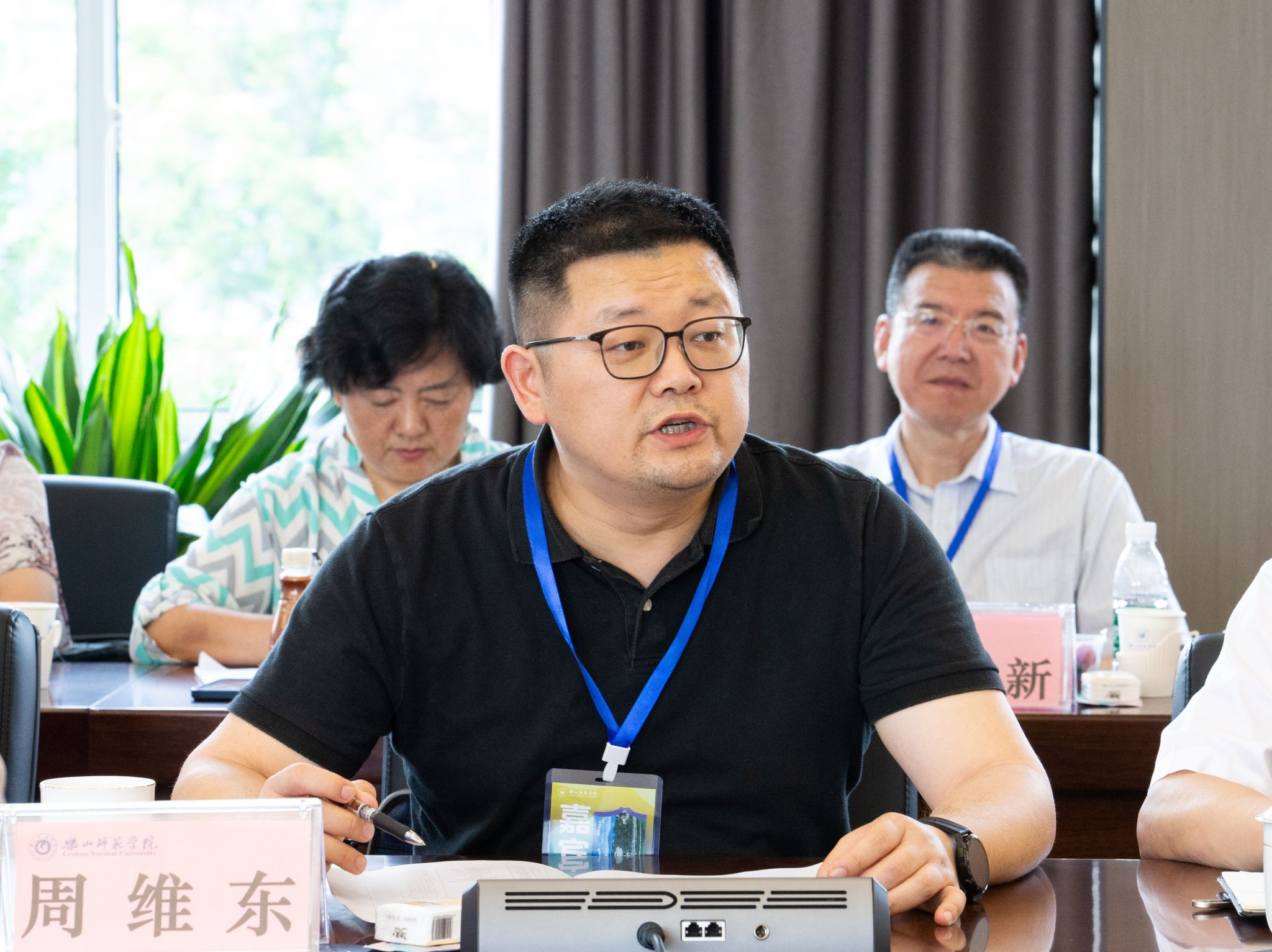 下午3点,省中文教指委第四次会议开幕式暨工作会议在乐山师范学院弘毅楼举行。四川省教育厅高等教育处调研员刘晓曦,教育部中文教指委副主任、四川省中文教指委主任曹顺庆,乐山师范学院党委副书记、校长刘进,出席会议并讲话。开幕式由乐山师范学院党委副书记、工会主席陈立志主持。