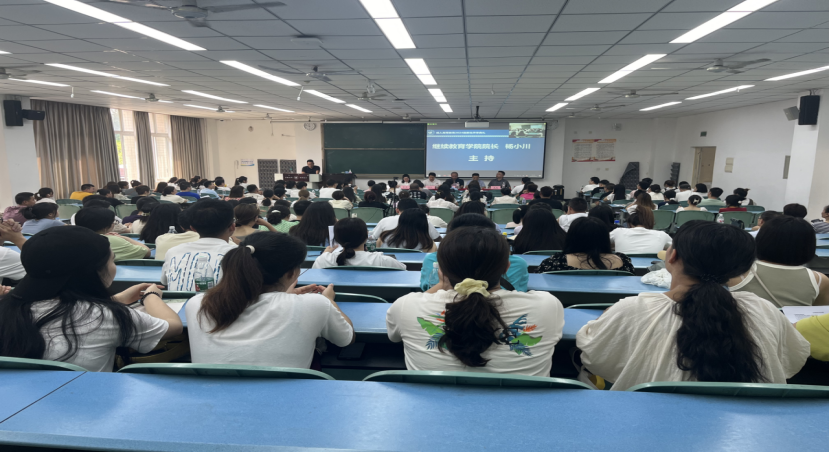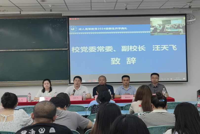 本网讯(文图/杨峰)为深入贯彻落实教育部《关于推进新时代普通高等学校学历继续教育改革的实施意见》的文件精神,5月25日上午,在学校行知楼125教室以线下线上同步直播的方式隆重举行乐山师范学院成人高等教育2024级新生开学典礼。学校党委常委、副校长汪天飞教授出席典礼并致辞,继续教育学院全体人员、教师代表、2024级新生代表150余人现场参会,其余新生通过线上直播方式参加典礼。开学典礼由继续教育学院院长杨小川主持。