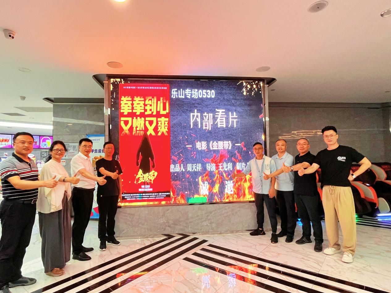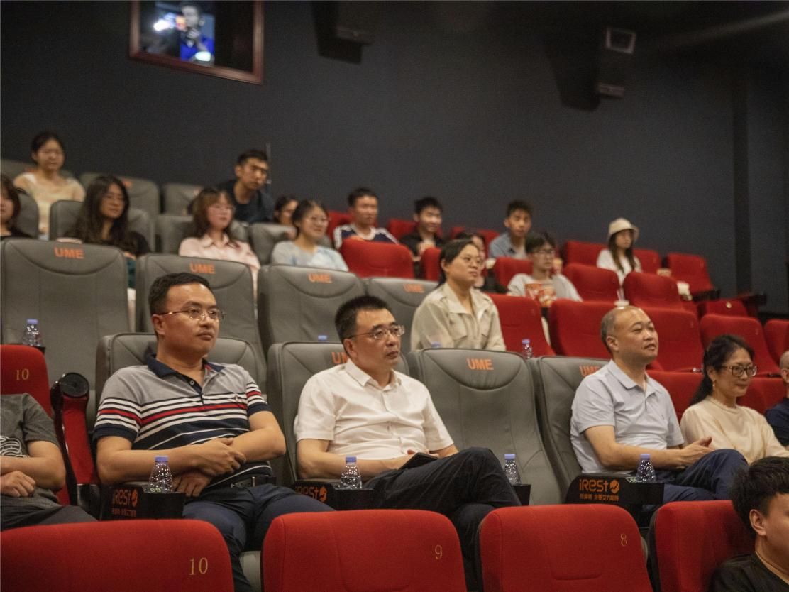 本网讯(文/肖荷 图/许桂林)5月30日,我校1984级政史系校友周天祥携其最新出品的电影作品《金腰带》及主创团队回到母校,在乐山市市中区UME国际影城举行内部放映和创作交流分享会,现场气氛热烈。学校党委常委、副校长、校友总会常务副会长李方裕,学校党委常委、党委宣传部、统战部部长杨锐,校友事务办公室主任、校友总会秘书长杜理才,美术与设计学院院长熊火花,校友事务办公室副主任聂丽,文学与新闻学院党委副书记魏群,文学与新闻学院副院长杨晓军,以及部分教师和学生代表参加了本次活动。