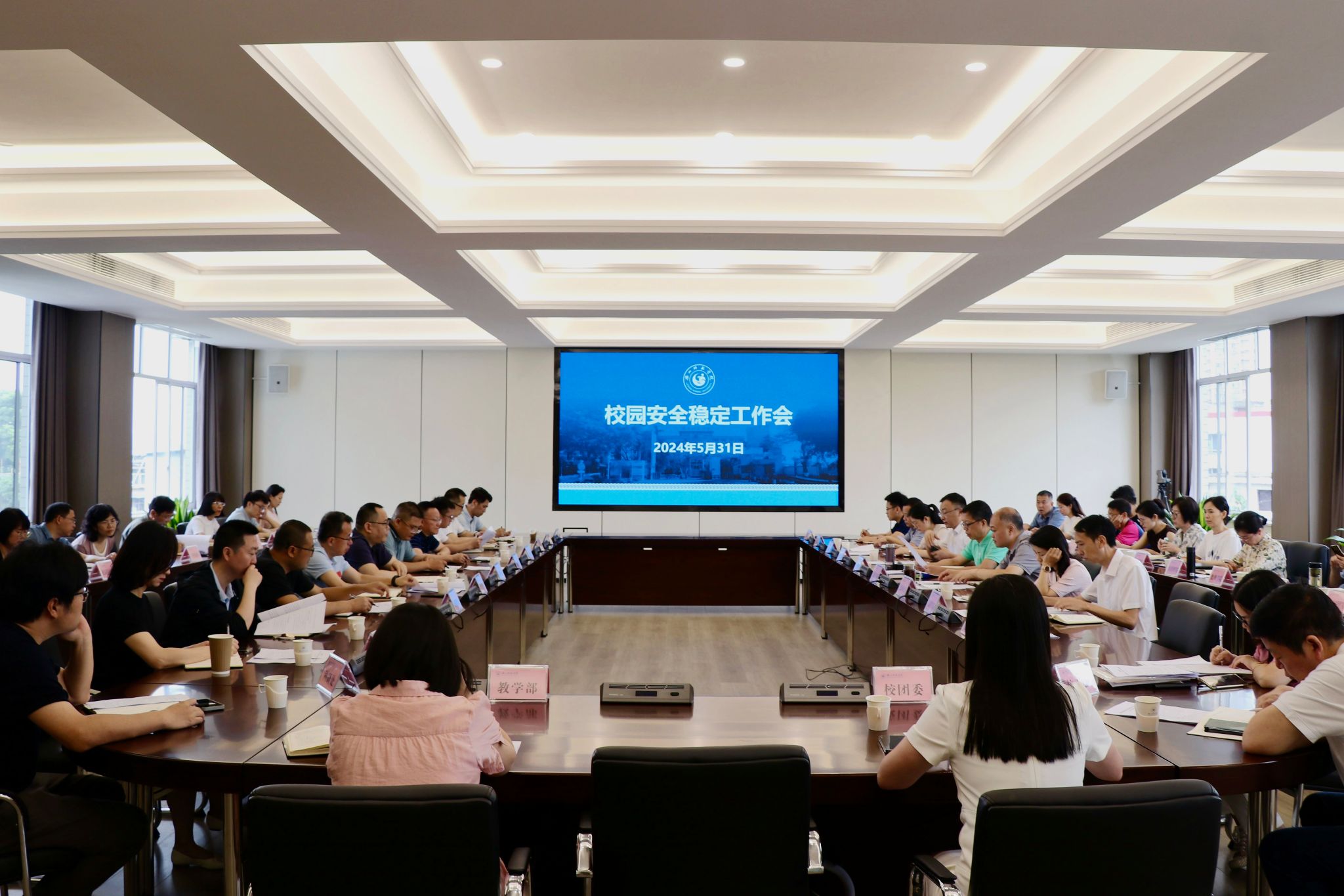 会议传达了四川省教育厅组织召开的高校校园安全工作约谈会、省委政法委组织召开的全省高校安全稳定会视频会议精神;对近期校园安全稳定事件进行了通报;对《乐山师范学院安全生产治本攻坚三年行动方案(2024-2026年)》《乐山师范学院关于开展2024年“安全生产月”活动的通知》具体内容进行详细解读;对近期学生安全管理、意识形态安全等工作进行了安排部署。