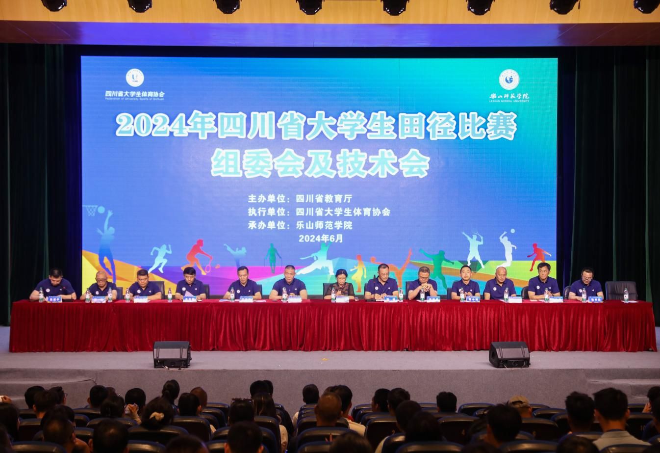 本网讯(文/孟繁增 图/任志文、融媒体中心)6月12日,由四川省教育厅主办、四川省大学生体育协会执行、乐山师范学院承办的2024年四川省大学生田径比赛在我校开赛。四川省教育厅体卫艺处一级调研员赖英莉,乐山师范学院党委书记胡丹,四川省大学生体育协会会长、西南财经大学体育学院院长杨远波,乐山市体育局党组成员、体育中心主任陈伟,四川省大学生体育协会副会长、西南医科大学体育学院院长王定宣,四川省大学生体育协会副会长、成都纺织高等专科院校体育部部长毛晓峰以及来自全省90所高校的2000余名裁判员、教练员和运动员们参加开幕仪式。乐山师范学院党委常委、副校长李朝晖主持开幕仪式。