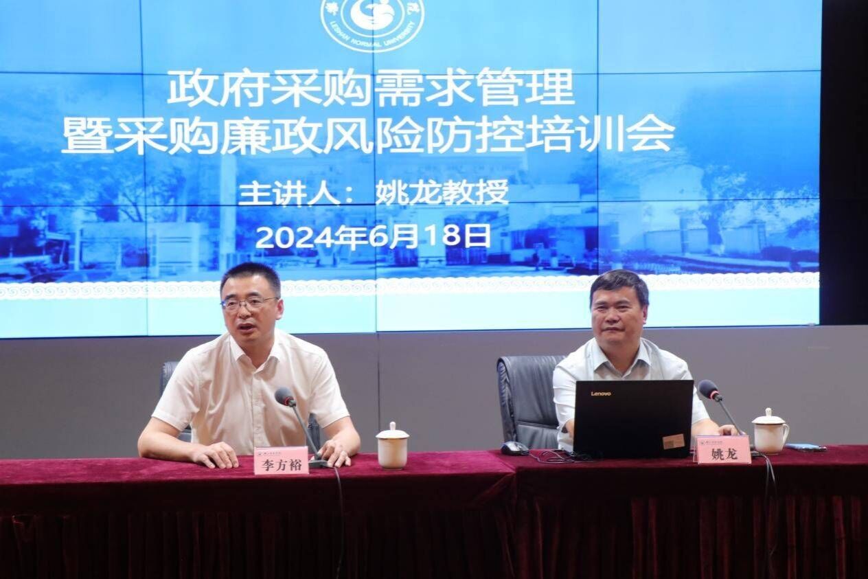 本网讯(文/周子涵、梁光德 图/融媒体中心、周子涵)为进一步加强学校采购需求管理,规范采购行为,强化采购风险防范意识,推进我校采购需求管理工作规范化、制度化建设。6月18日下午,学校邀请全国高校政府采购分会常务理事、四川省财政学会常务理事、四川省高校采购分会会长姚龙教授在旷怡楼学术报告厅开展政府采购需求管理暨采购廉政风险防控专题培训,培训会由学校党委常委、副校长李方裕主持。