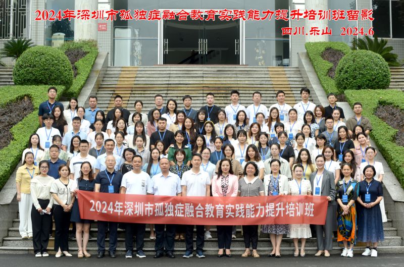 开班仪式结束后,参会人员进行了合影留念。据悉,此次培训历时3天,来自川渝两地的特殊教育“双高”专家,将为学员们讲授关于孤独症融合教育实践能力提升的6场专题讲座,并开展一次到乐山市特殊教育学校的现场观摩和交流学习。