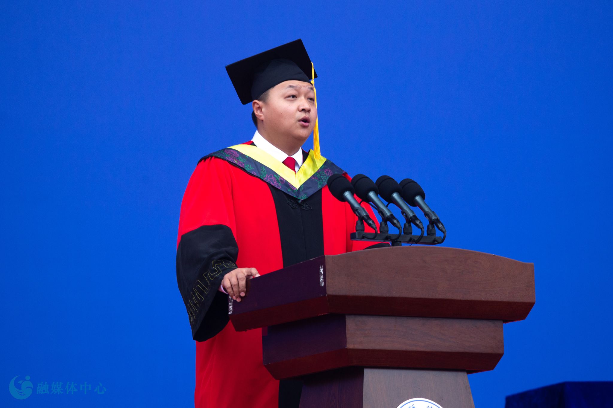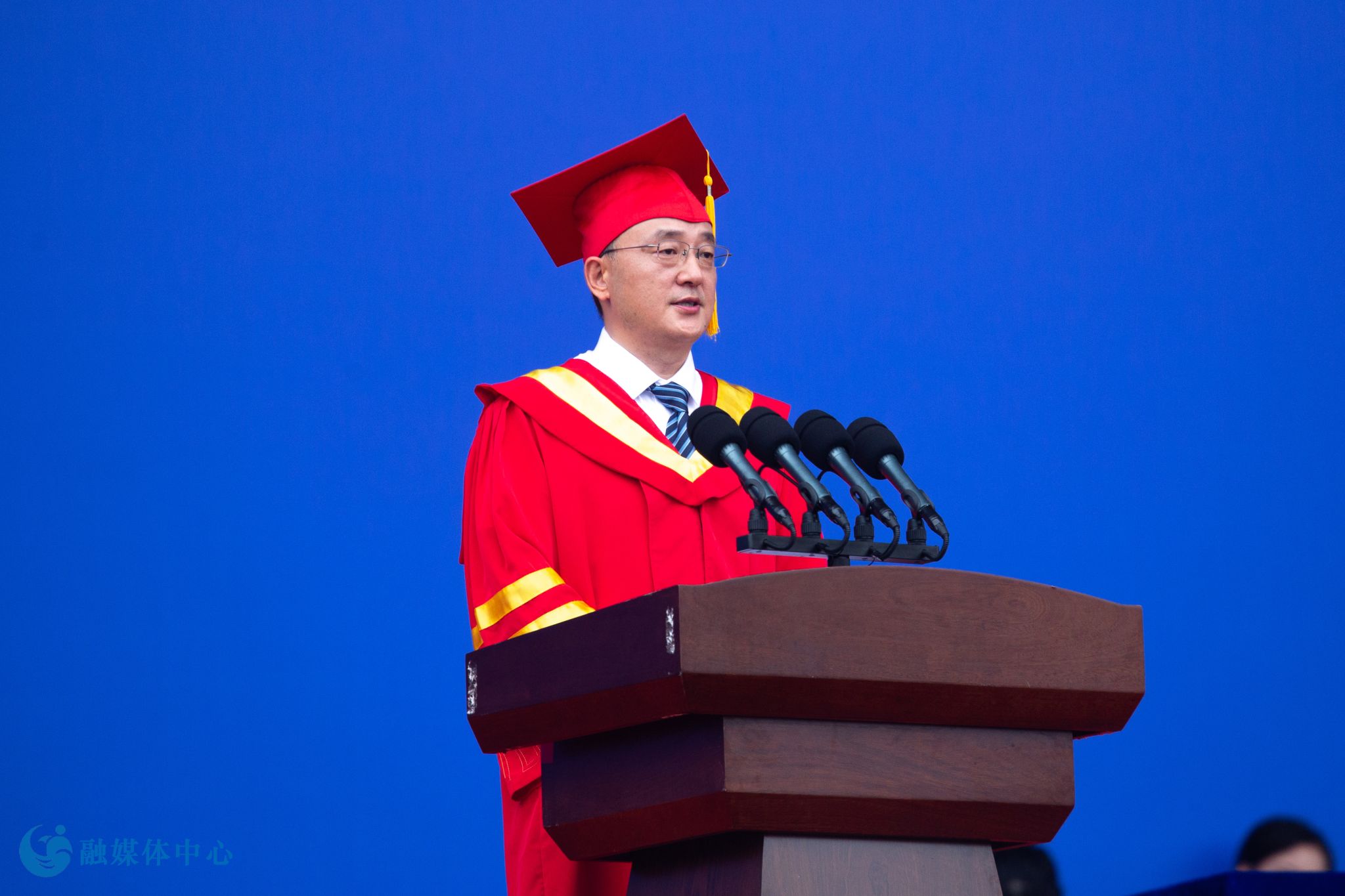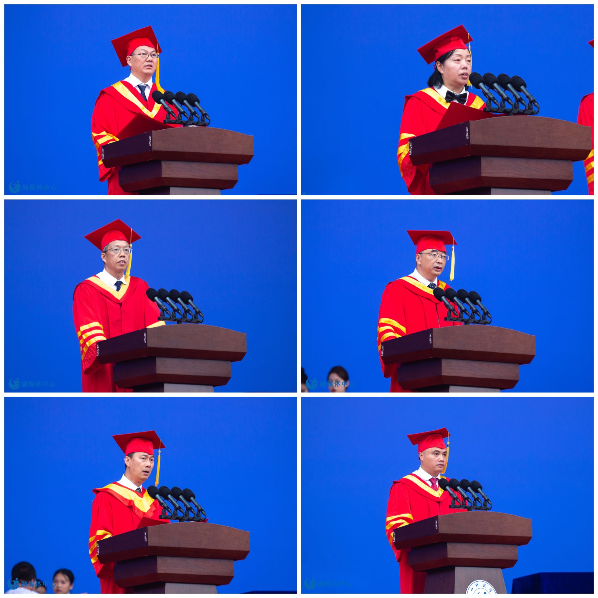 校党委书记胡丹,校党委副书记、校长刘进,校党委副书记、工会主席陈立志,校党委副书记、纪委书记彭尚源,校党委常委、副校长陈范华、李方裕、汪天飞、江滔以及学校学术委员会代表、教师代表、校友代表、各职能部门和学院负责人出席,与家长代表共同见证2024届的5374名全日制同学和11154名继续教育同学圆满完成学业,为同学们开启未来的追光逐梦之旅践行。典礼由校党委常委、副校长李朝晖主持。