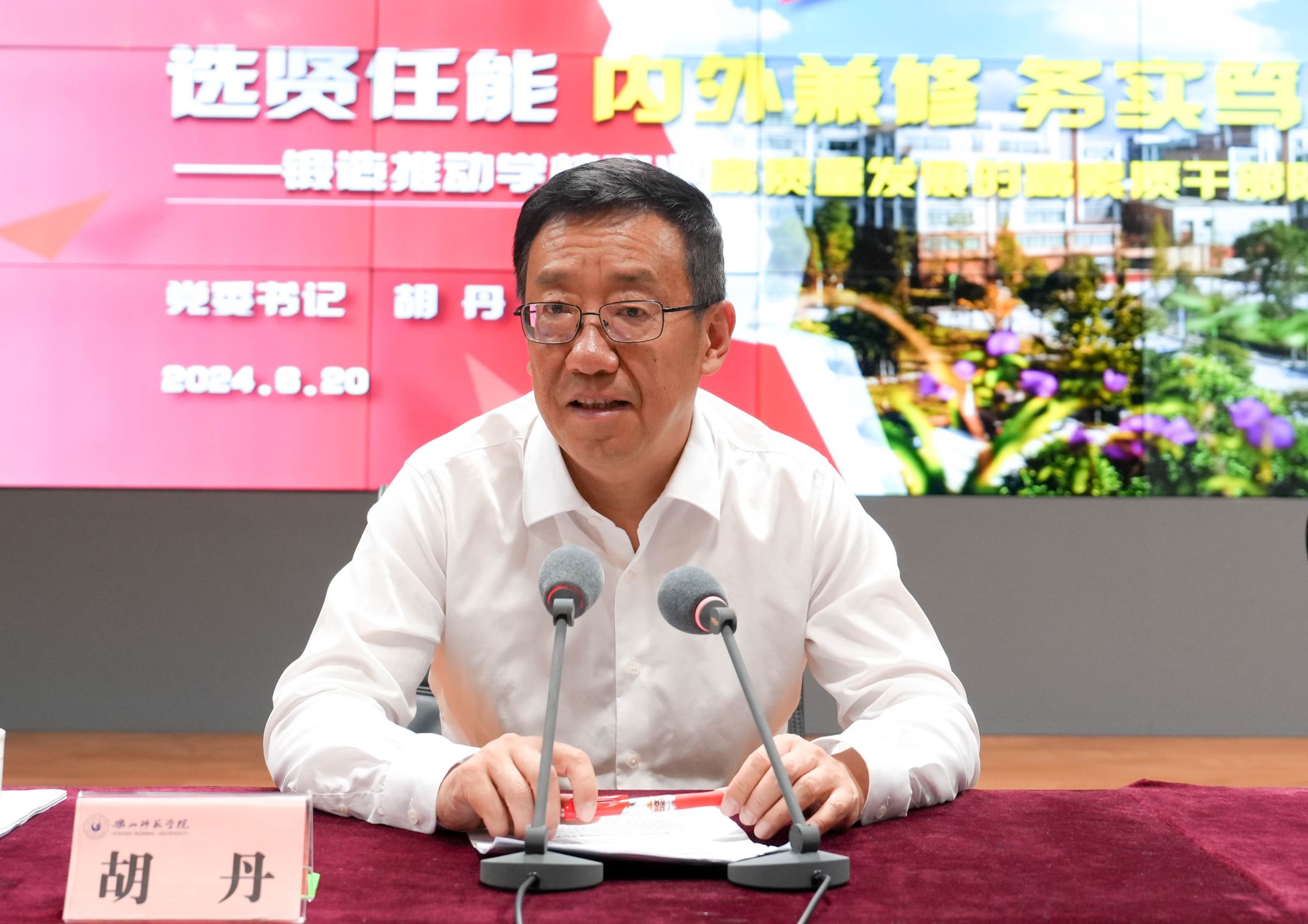 胡丹认为高校领导干部的能力素养包括扎实的理论素养(成为“政治家”),深厚的教育情怀(成为“教育家”),卓越的担当本领(成为“实干家”)。他详细阐述了担当本领的多个方面,包括全面的知识体系、良好的管理能力、战略规划能力、团队建设能力、决策能力、沟通协调能力、创新发展能力、危机应对能力、自我管理能力,最终落脚点是沉下心来抓落实。他强调,当前学校正处在攻坚克难的关键期。狠抓落实的责任担当,就是要对学校发展的重点工作、重点改革事项一抓到底,对学校发展遇到的新情况新问题进行大胆推进,确保抓出成效。各级干部要面对矛盾敢于迎难而上,面对挑战敢于挺身而出,面对失误敢于承担责任,面对不正风气敢于坚决斗争,牢固树立极端负责的工作态度,守土有责不动摇,守土担责不含糊,守土尽责不懈怠。