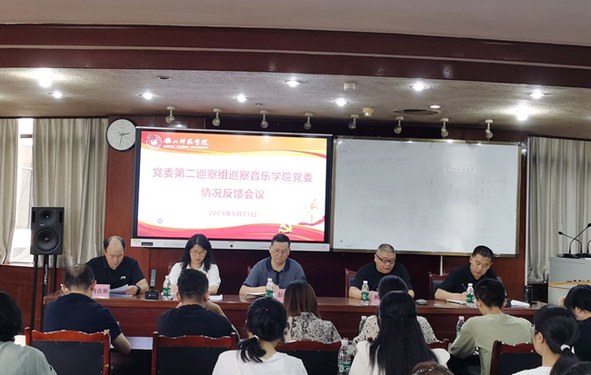 党委组织部、纪委办、巡察办主要负责同志,党委第一、第二巡察组全体成员,法学与公共管理学院党委、音乐学院党委领导班子成员、全体教职工、学生代表参加了会议。