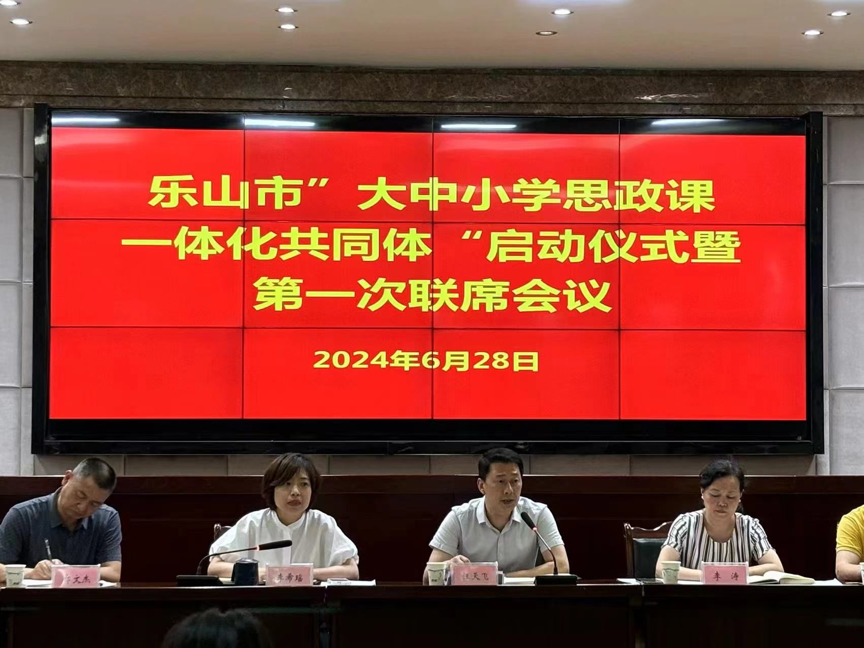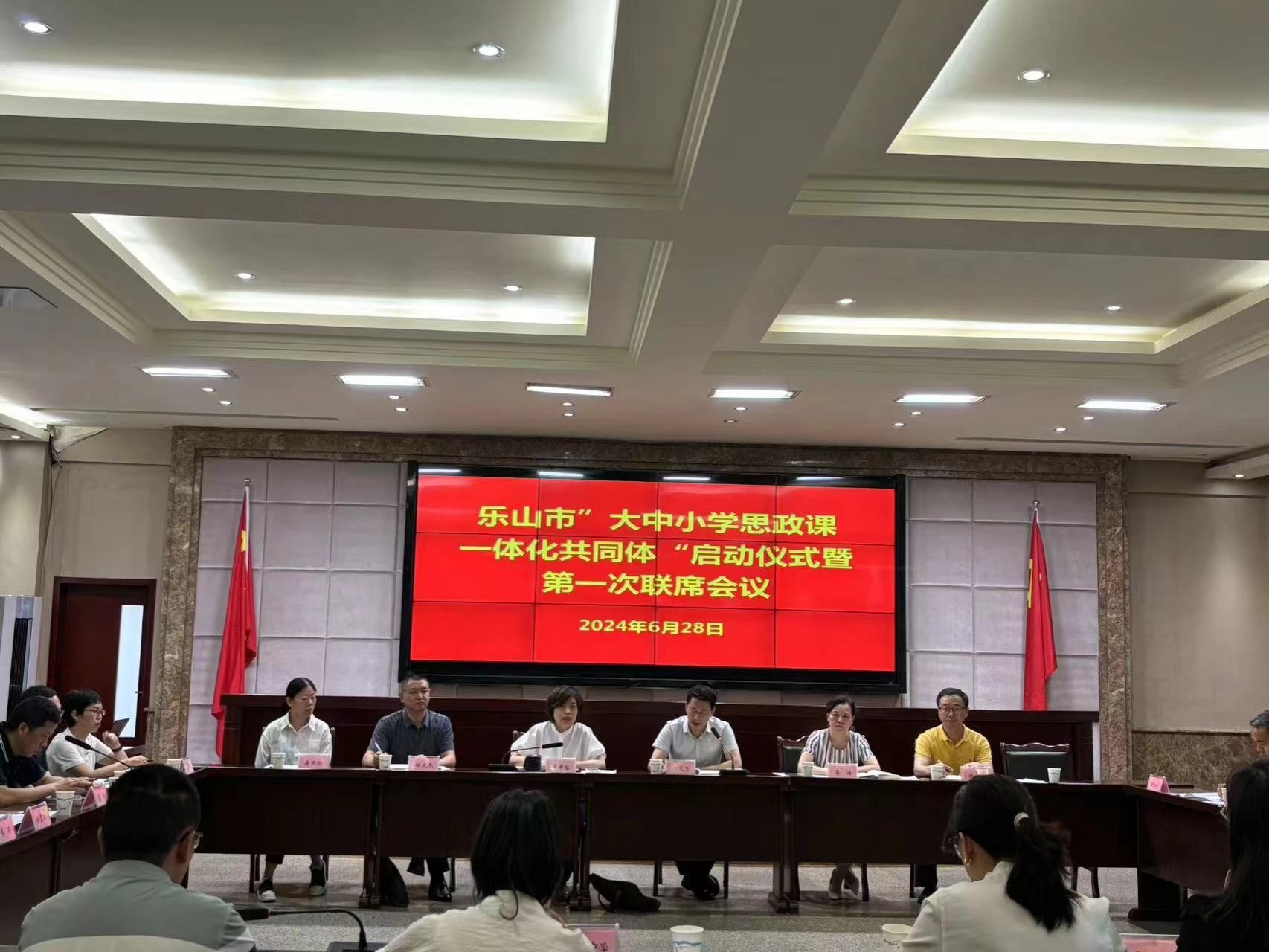 本网讯(文图/吴雨)6月28日下午,“乐山市大中小学思政课一体化共同体”启动仪式暨第一次联席会议在市教育局召开。学校党委常委、副校长汪天飞,马克思主义学院领导班子、四川省课程思政示范研究中心、教法课教师,学校党委宣传统战部领导,乐山市教育局领导和相关处室,各成员单位的领导和思政课教师代表参加。会议由市教育局机关工委书记李希瑶主持。