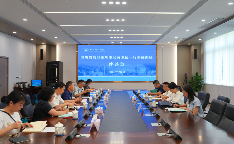 本网讯(文图/杨燕)7月2日上午,四川省残联党组成员、副理事长黄卫德和教育就业处副处长景义婷来校调研,乐山市残联党组成员、副理事长陈承筹和康复就业科科长胡旭容陪同调研。学校党委副书记、校长刘进,党委常委、副校长李朝晖、汪天飞,学校特殊教育学院领导班子成员等参与调研。上午10:00,调研座谈会在弘毅楼207会议室举行。