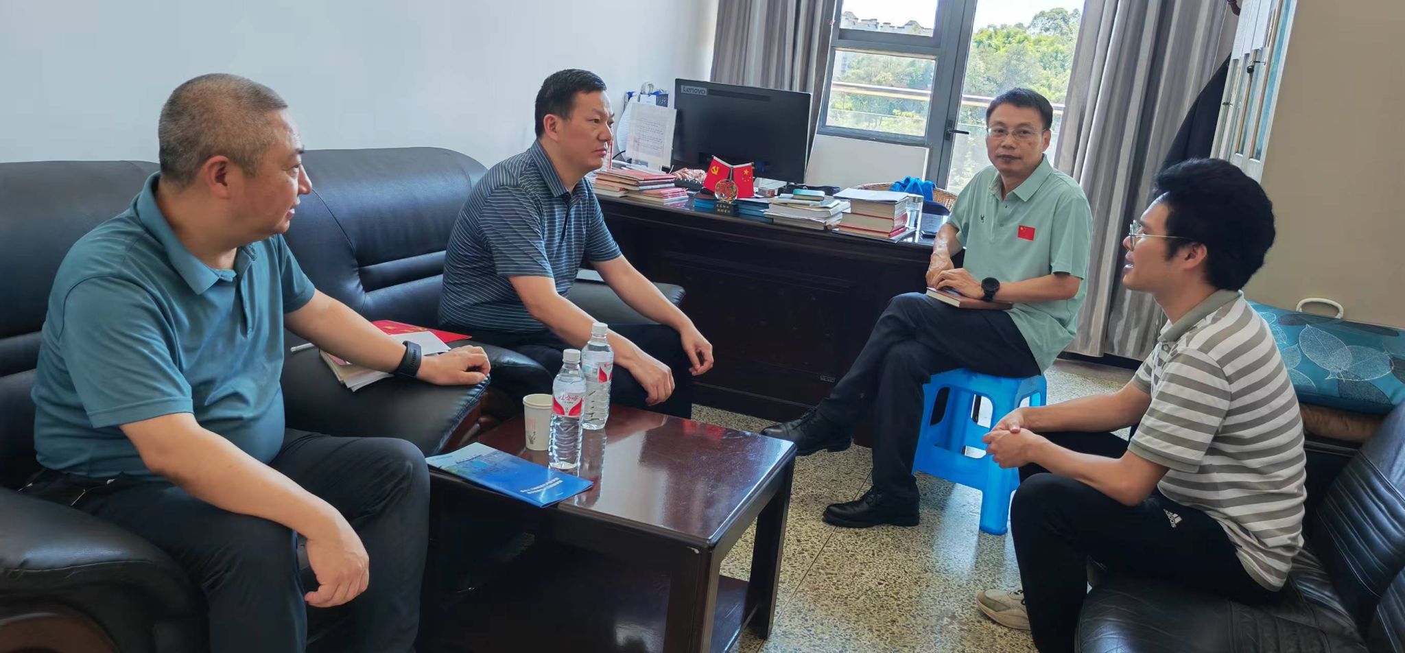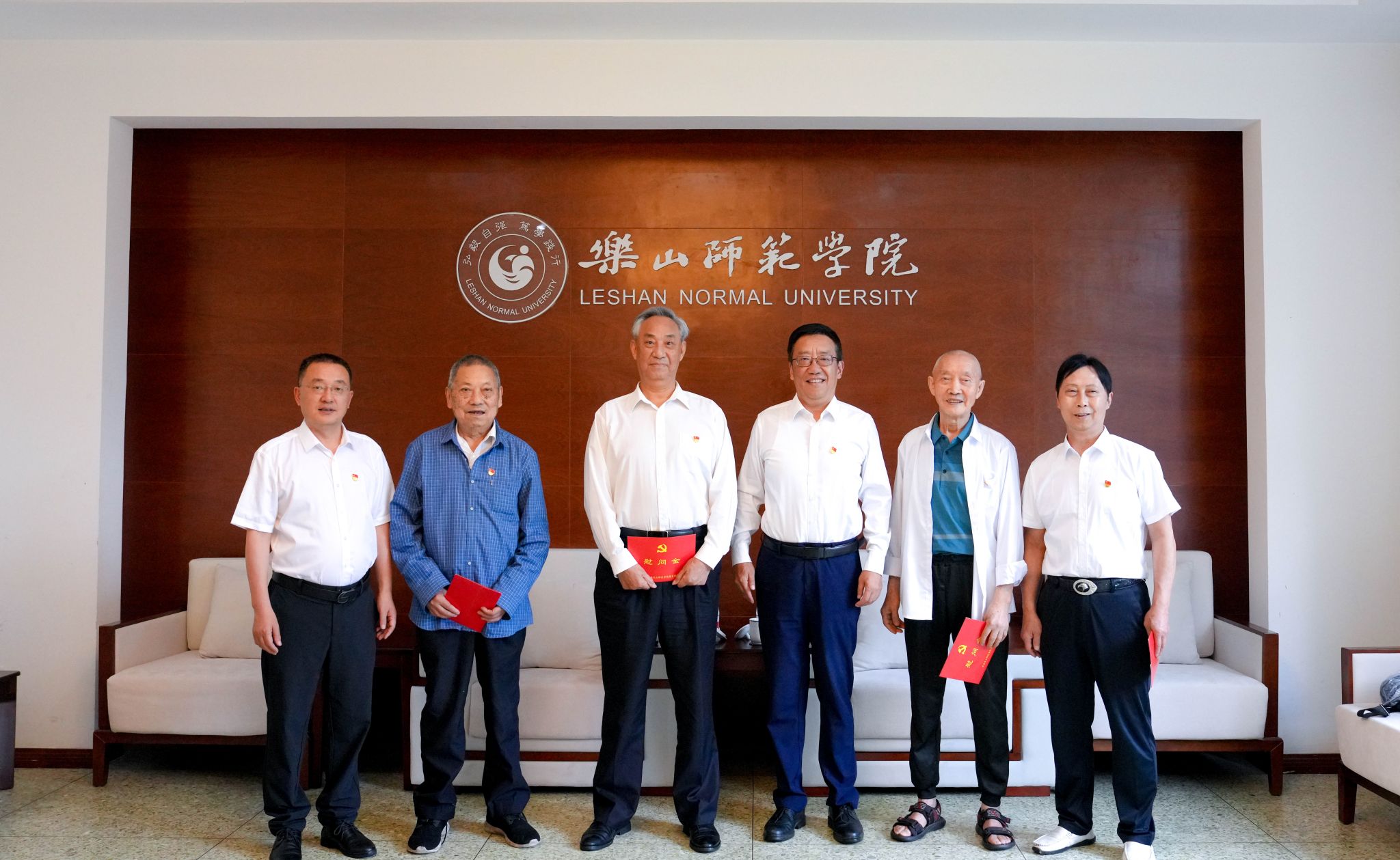 在实验实训大楼会议室,胡丹和刘进代表学校党委、行政关心“光荣在党50年”老党员黄金祥、周野、谈俊云、罗俊奎的生活情况和身体状况,了解他们的实际困难,对他们曾经为学校的改革发展建设作出的积极贡献给予了充分肯定,对他们一如既往心系学校发展表达了由衷感谢。胡丹介绍了学校党委近年来学习贯彻习近平新时代中国特色社会主义思想,巩固历次主题教育成果,以高质量党建引领高质量发展,带领全校师生在教学科研、学科竞赛、社会服务、助力乡村振兴等方面取得的突出成绩。刘进介绍了学校在聚焦“教育强省、乐师何为”的重要命题,落实立德树人根本任务,全力推进申硕和新校区建设方面取得的阶段性成果和最新进展,全校师生按照第四次党代会提出的“1329”发展战略以及学校“113”高质量发展思路奋力拼搏的昂扬斗志。4名老同志对学校党委、行政的关心表达了感谢,简要回顾了学校发展历程,分享了曾经的趣闻轶事,历数了学校近年来取得的成绩,对学校今后的发展提出了建设性意见和美好祝愿。