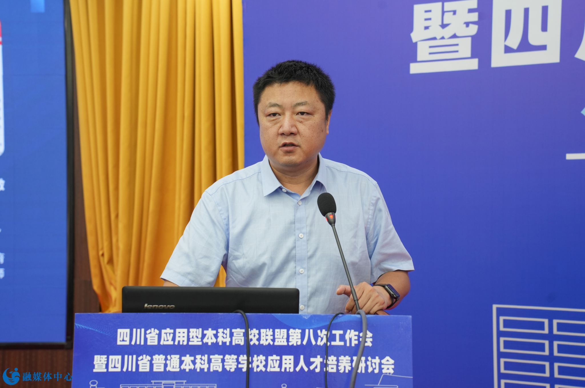 乐山师范学院副校长汪天飞进行题为《地方院校“三化五融合”应用型人才培养探索与实践》的大会交流报告。他从推进专业融合改革,提升专业内涵发展水平;加强“课程四融合”,打造高质量应用型课程体系;推动“学用创”融合,强化学生创新实践能力培养;推动“校政行企融合”,增强协同育人合力;注重“融合师资”培养,打造高水平应用型教师队伍等方面汇报了我校人才培养改革的举措和成效。