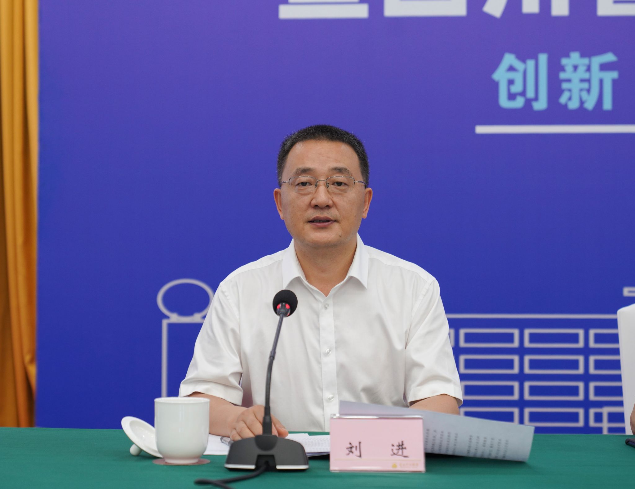 (乐山师范学院党委副书记、校长刘进主持会议)