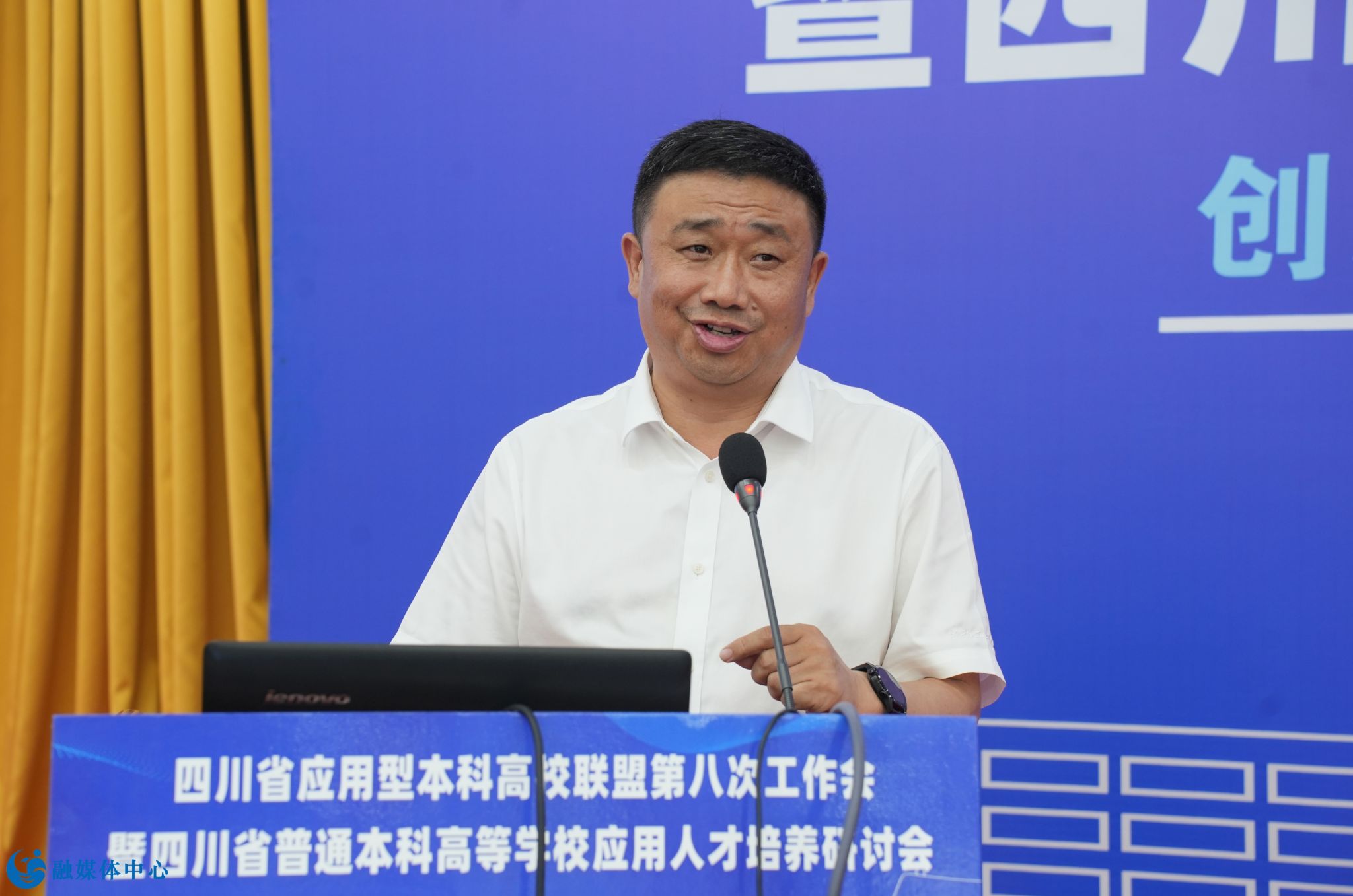 肖峰代表四川省高等教育学会致辞。他肯定了联盟近年来的工作并对今后的工作提出四点建议。第一,要继续坚持创新引领,深化教育改革。第二,要进一步加强融合交流促进资源共享。第三,要强化服务意识,服务地方发展。第四,要建强应用型本科高校,提升办学实力。他指出,本次会议的召开将为我省应用型本科高校的建设与发展注入新的活力与动力,希望大家共同携手,开创我省高等教育事业的新局面。