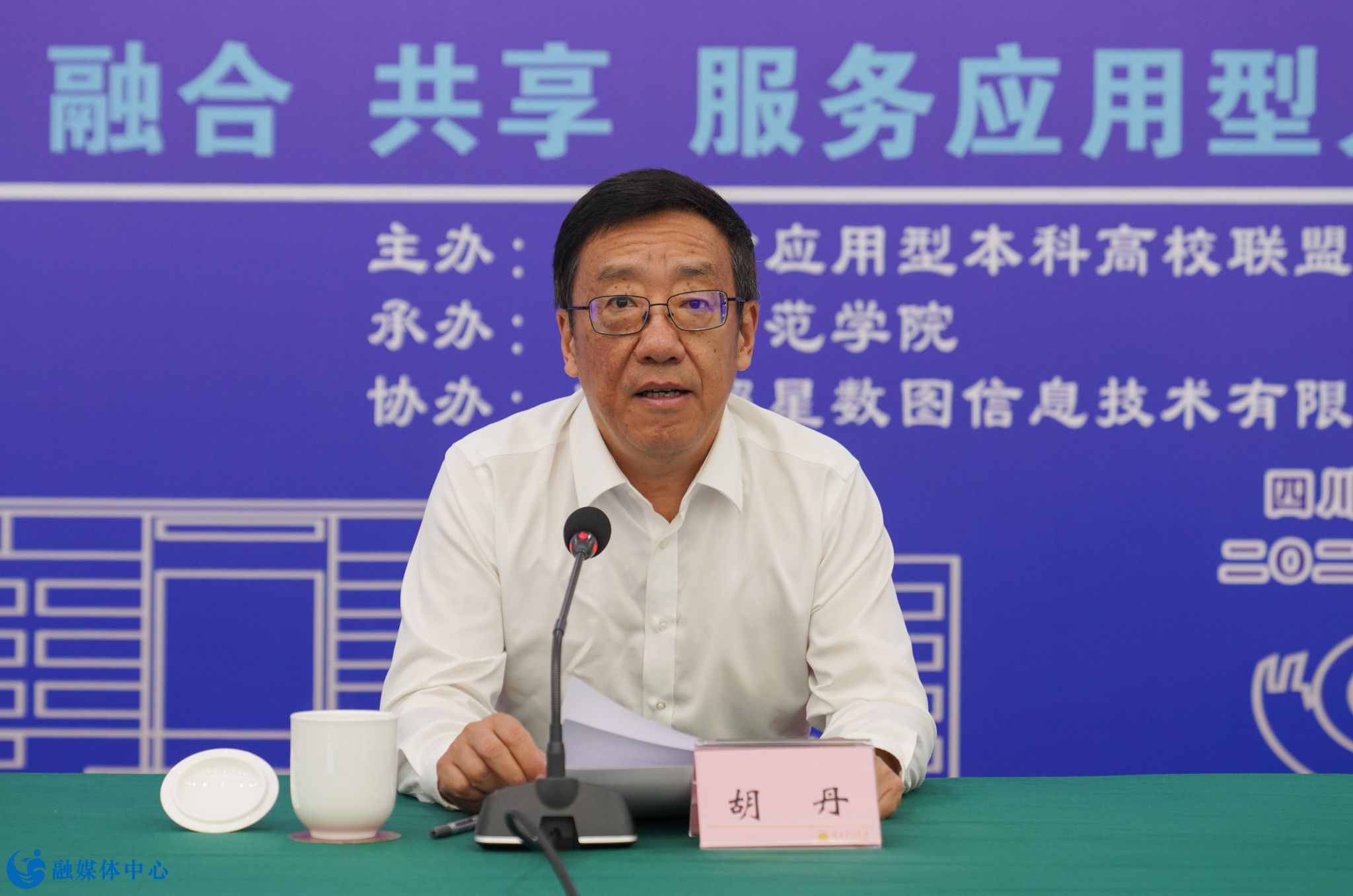 胡丹在开幕式上致辞,他首先代表乐山师范学院向莅临本次会议的各位领导、专家、嘉宾表示热烈的欢迎,向长期以来对学校发展给予关心和支持的领导、专家表示衷心的感谢。他表示,四川省应用型本科高校联盟为我省应用型本科高校搭建了重要的学习、交流和共享共建的工作平台,联盟坚持以创新发展、协同育人、产教融合为主轴,深入研究与探索应用型高校人才培养面临的共性问题,各方面工作取得了显著成效。他希望,本次会议能够进一步加强联盟各高校之间的交流与合作,各高校“优势互补、资源共享、互惠互利、共同发展”,共同致力于推进全省应用型人才培养改革与实践,培养适应社会需求、人民满意的高素质应用型人才,为服务国家战略和地方经济社会发展提供有力支撑,为建设教育强国、教育强省作出新的贡献。