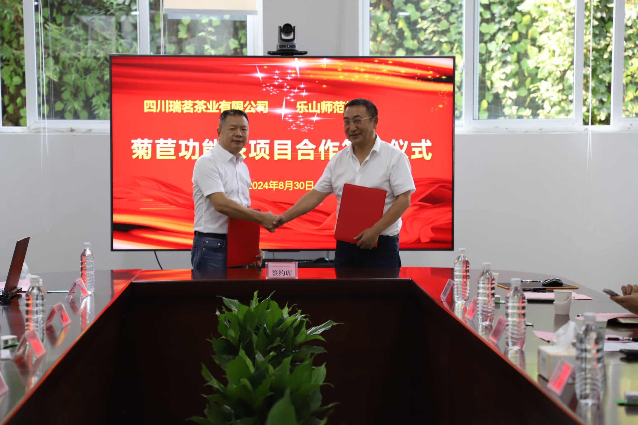 本网讯(文/梁晨 图/李佳徽)8月30日,我校与四川瑞茗茶业有限公司在弘毅楼211A会议室签订战略合作协议,以校企合作的方式,促推菊苣功能茶项目落地。