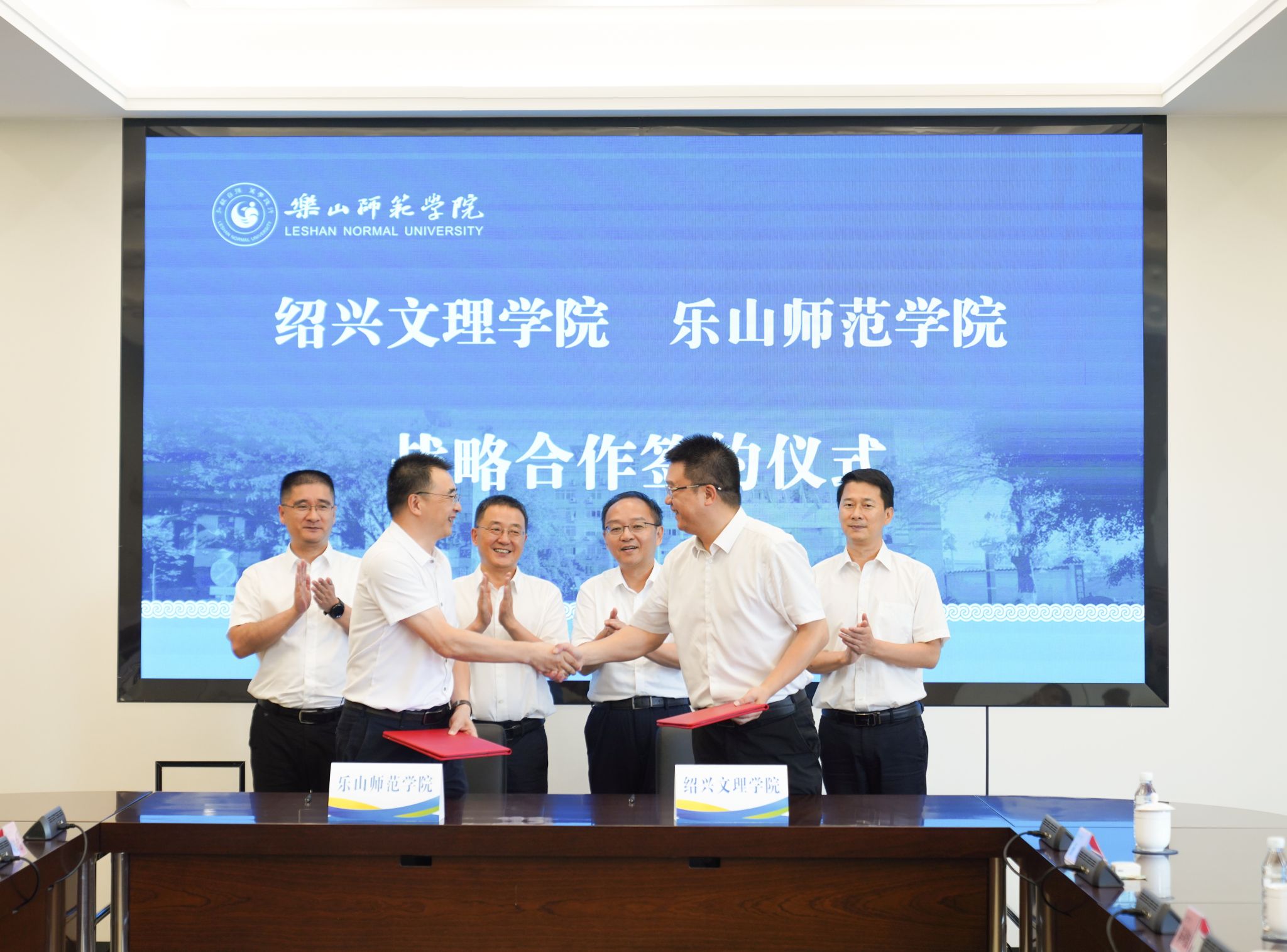 赵阳在讲话中指出,自2021年携手合作以来,两校走出了一条东西部高校协同发展的创新之路,成效显著。本次两校战略合作的深化,不仅是对前期合作成果的进一步巩固提升,更是对未来合作前景的展望规划,绍兴文理学院将继续在人才交换培养、技术共享、人才资源共派、研究共推等方面与乐山师范学院深化合作,通过合作实现资源共享的最大化、优势互补的最优化、互利共赢的持久化,为两校师生提供更加广阔的交流学习平台,共同推动两地经济文化教育的融合发展。