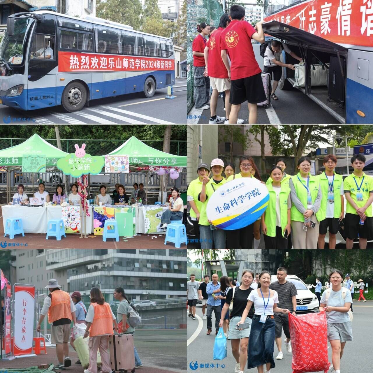 学校迎新工作人员和各职能部门负责人热情耐心地为新生和家长答疑解惑,他们热情洋溢、有条不紊地组织新生办理报到手续,并热情引导学生和家长前往宿舍楼、参观校园,新生和家长们也纷纷留下与学校的第一张合照,在开学第一天感受到乐山师范学院的热情温暖和人文关怀。