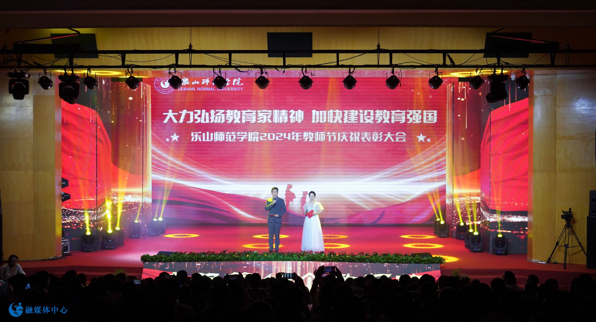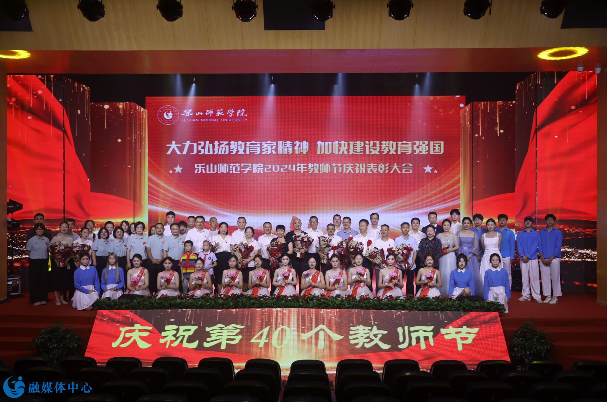 最后,乐山师范学院庆祝第40个教师节暨表彰大会在歌舞表演《光芒》中圆满落幕。