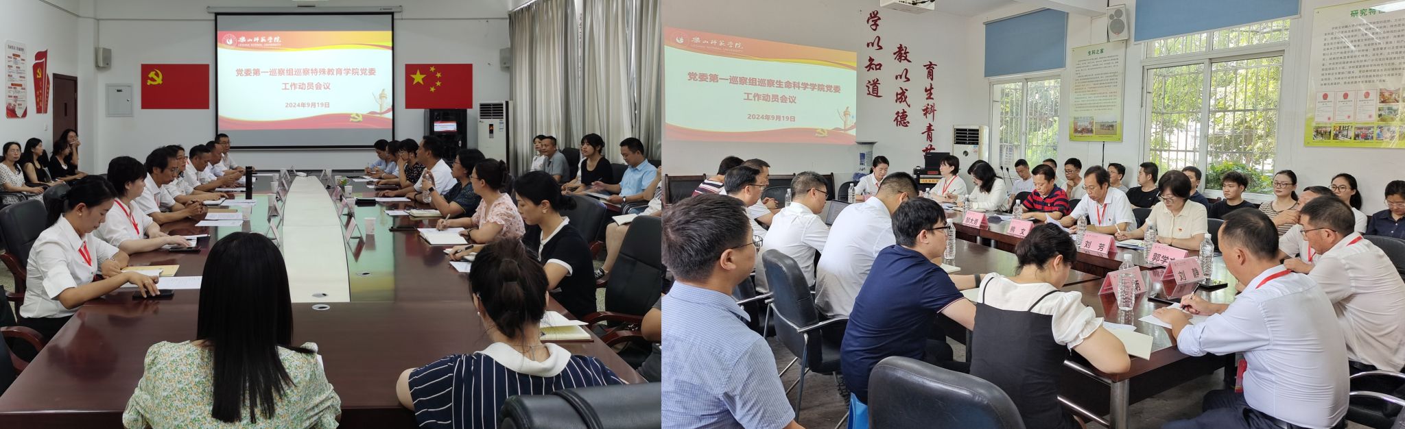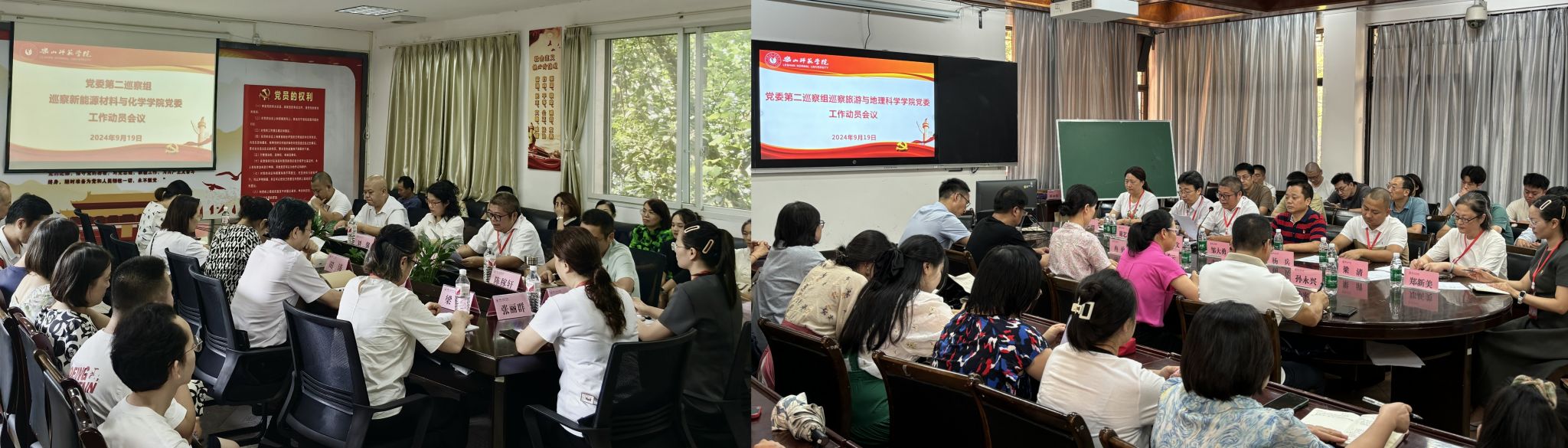本网讯(文/许亚梅 图/朱以荣、易秀琴、杜鸿、薛文娟)按照学校党委统一部署,9月19日党委第一、第二巡察组完成对特殊教育学院党委、生命科学学院党委、新能源材料与化学学院党委、旅游与地理科学学院党委等四个被巡察党组织的进驻工作并召开巡察进驻动员会。