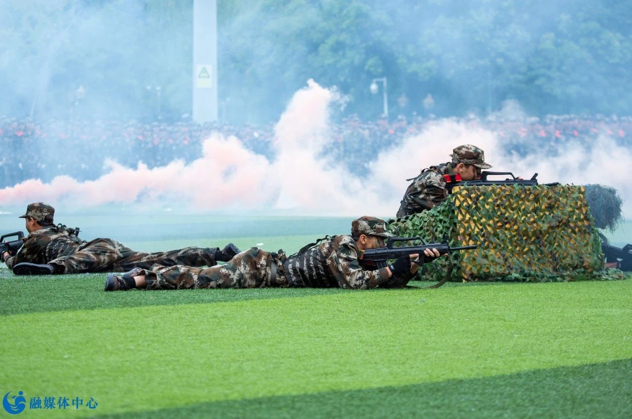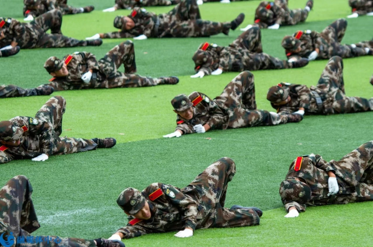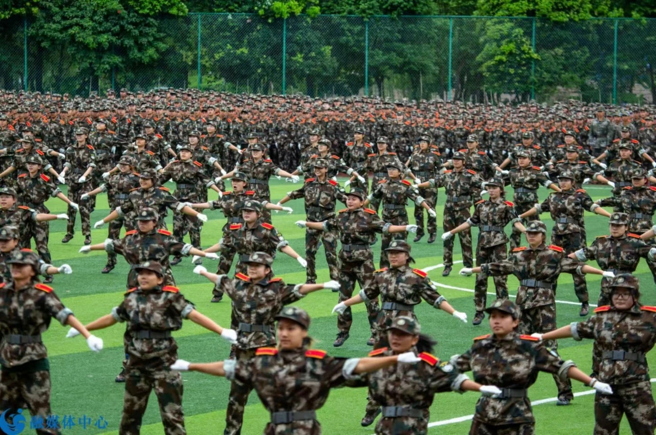 军训不仅热血,也饱含青春的热烈。2024级新生随着音乐律动,跳起心理健康操,尽显青春朝气。