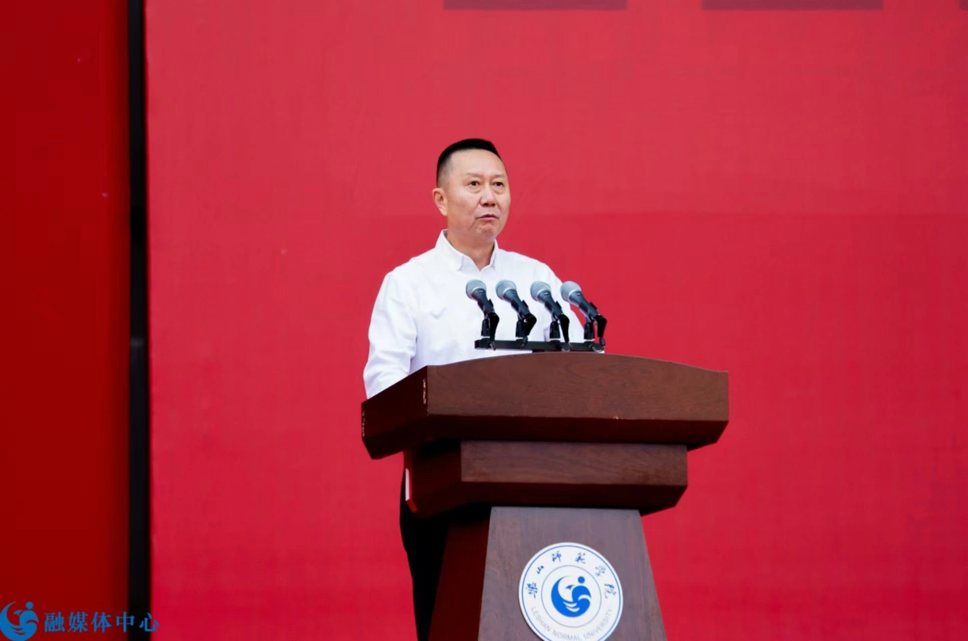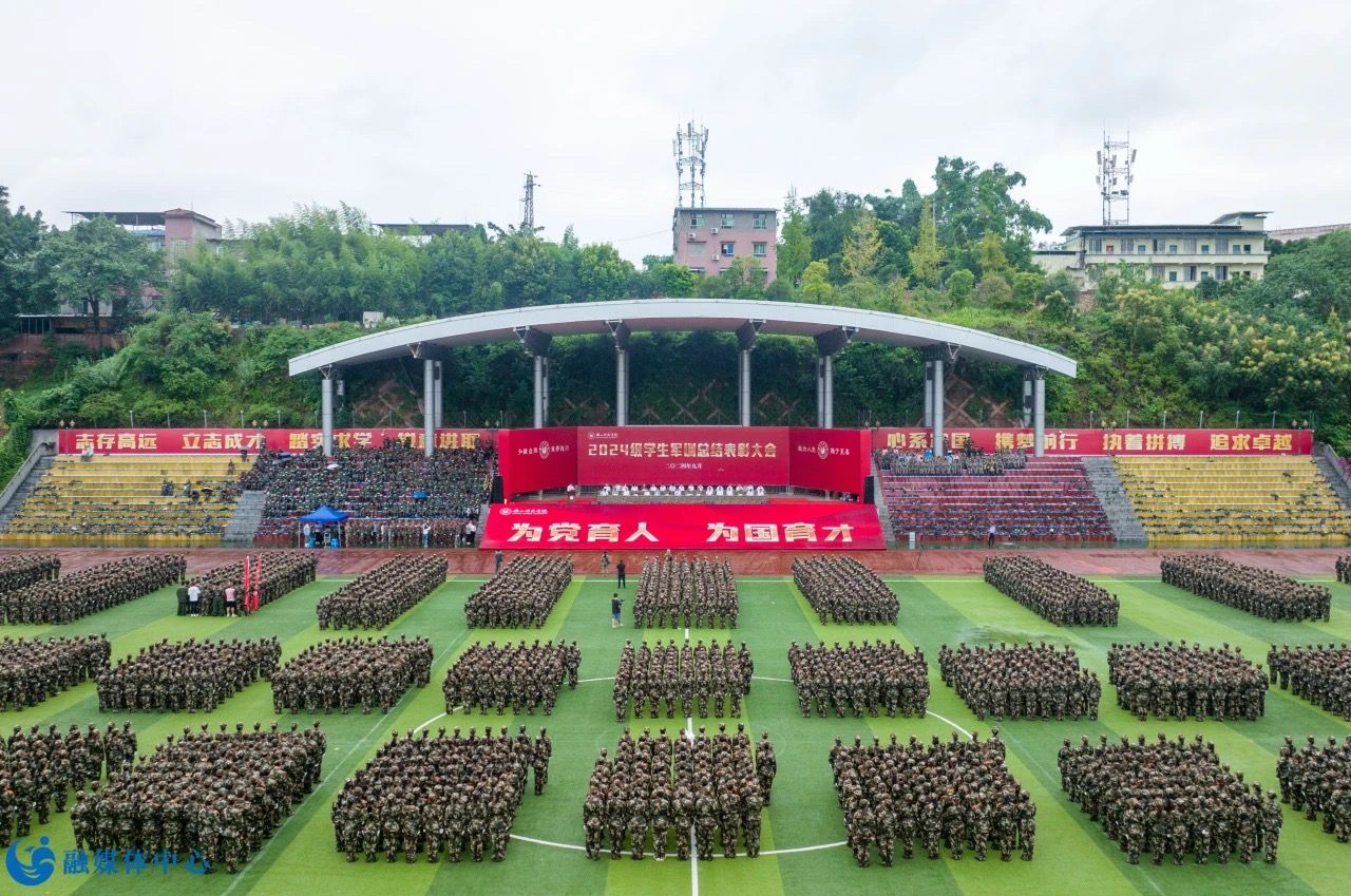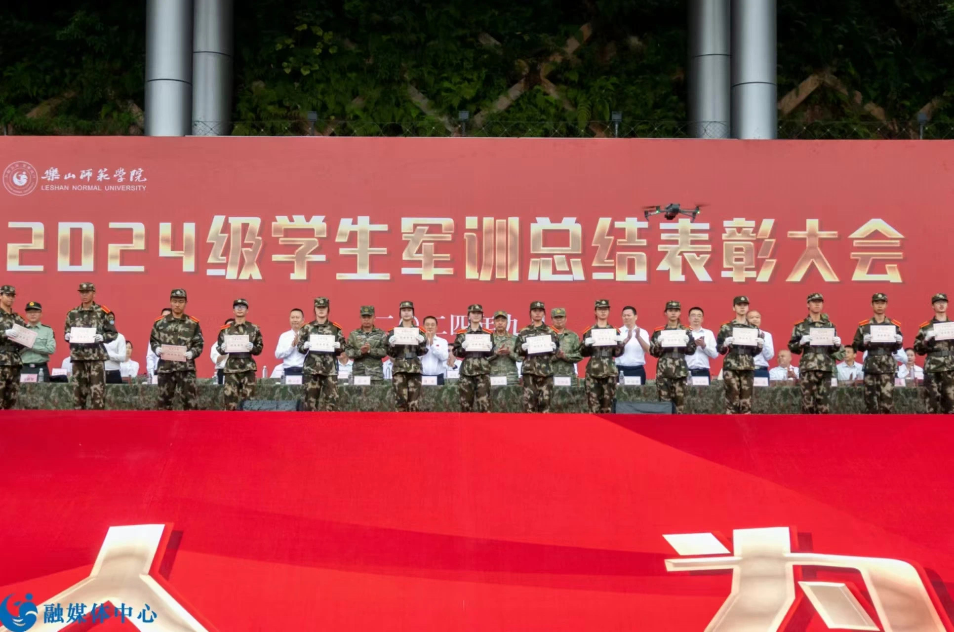 本网讯(文图/融媒体中心)金秋九月庆盛事,硕果飘香迎佳节。9月30日,在庆祝中华人民共和国成立75周年之际,2024级学生军训总结表彰大会在北校区田径场举行,经过14天的艰苦训练,4400余名新生在此展示训练成果。学校党委副书记、校长、军训领导小组组长刘进,乐山军分区大校副司令员李永红,武警乐山支队中校副支队长姜军,市中区人民武装部中校副部长王静嘉,党委副书记、工会主席陈立志,党委副书记、纪委书记彭尚源,党委常委、副校长陈范华、李方裕、汪天飞等出席大会。校党委常委、副校长、军训领导小组常务副组长李朝晖主持大会。