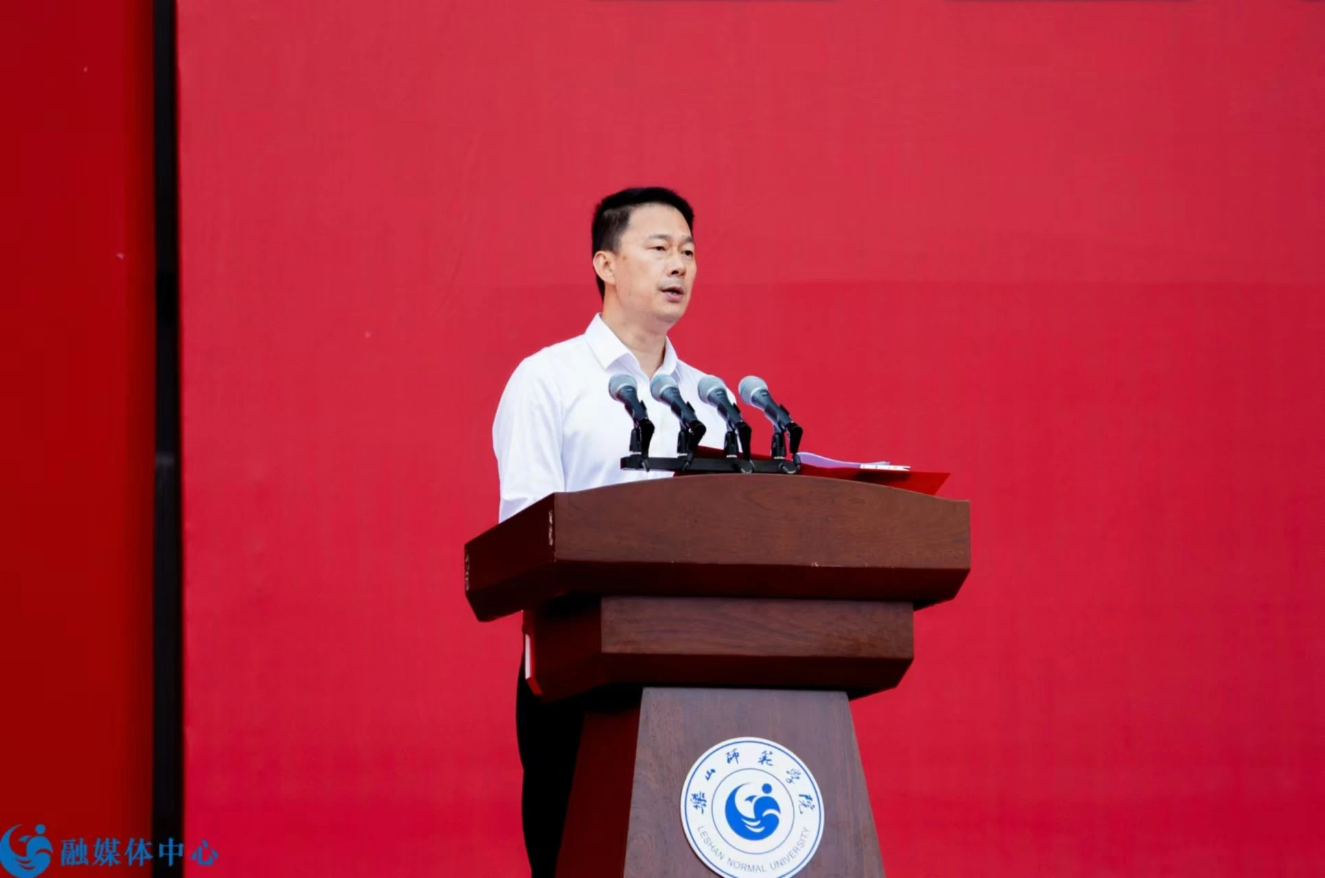 李永红代表乐山军分区对本次军训任务的圆满完成和精彩表演以及受表彰的单位和个人表示热烈的祝贺,并充分肯定了2024级学生军训成绩及学校国防教育的显著成果。他指出,此次汇报表演充分展示了当代青年大学生朝气蓬勃、昂扬向上的青春风采,体现了勇于吃苦、挑战自我的过硬作风。