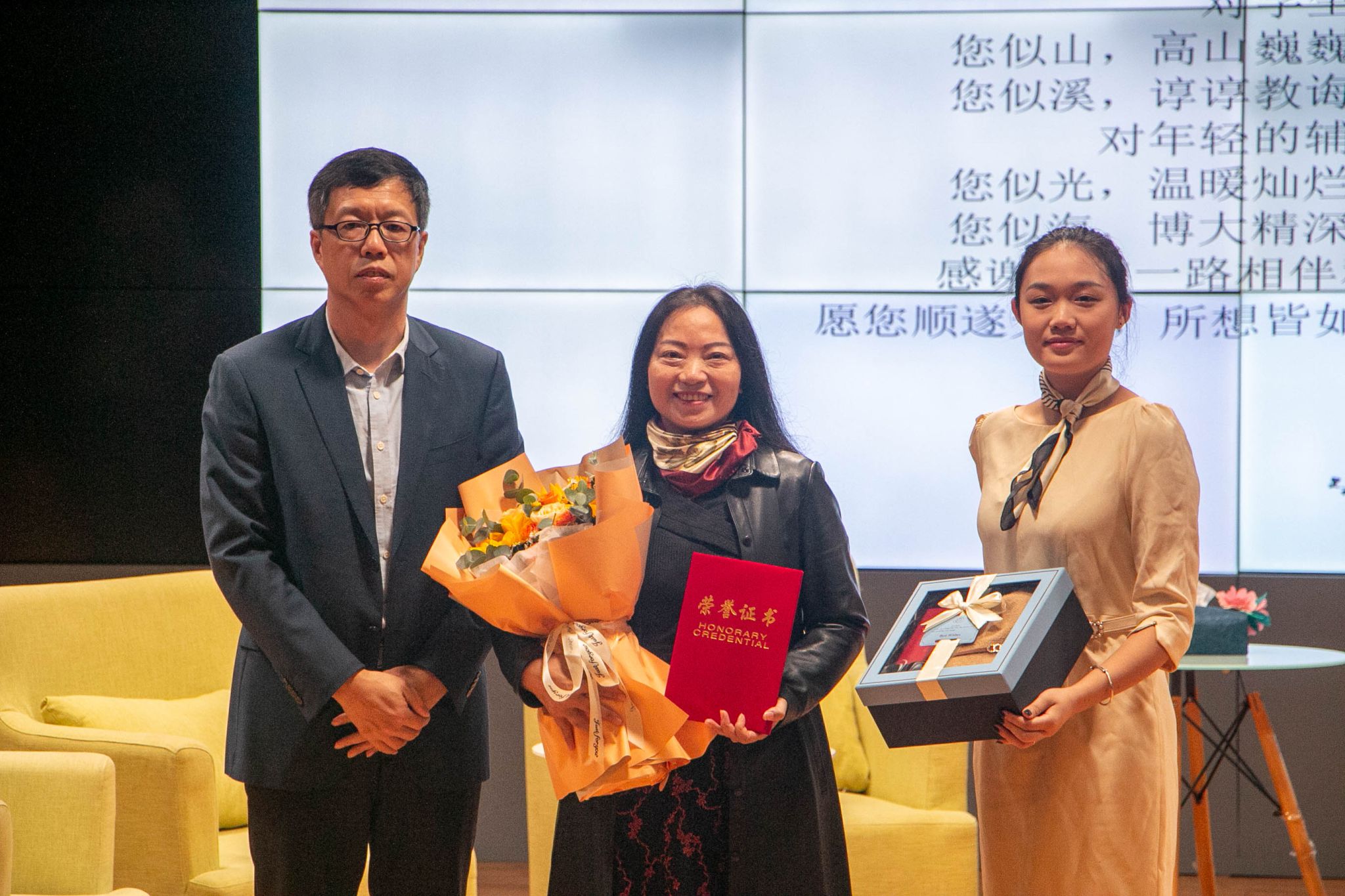 论坛上,党委学生工作部为第一位在学工队伍退休的辅导员谭红梅老师举行了荣休仪式,党委常委、副校长李朝晖给谭红梅老师颁发了荣誉证书、纪念品以及鲜花,表达了对她的诚挚感谢与深切祝福。希望全体辅导员们在今后的学习和工作中,以谭红梅老师为榜样,将她对学生工作深沉而炽烈的爱接力下去,鼓足干劲,继续前行,当好学生成长成才的引路人,交出岗位工作和个人发展的高分答卷!