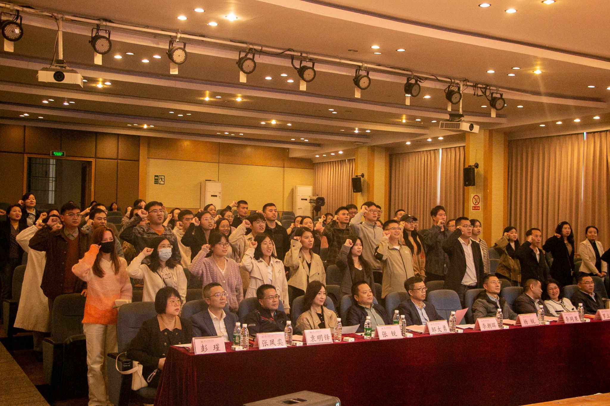 之后进行了新进辅导员与职业发展导师签订《结对培养承诺书》。一站式社区辅导员蒋雪英代表新进辅导员发言,党委学生工作部副部长陶媛带领全体辅导员,起立、共同宣誓,用铿锵有力的声音重温着高校辅导员的神圣使命与职责。