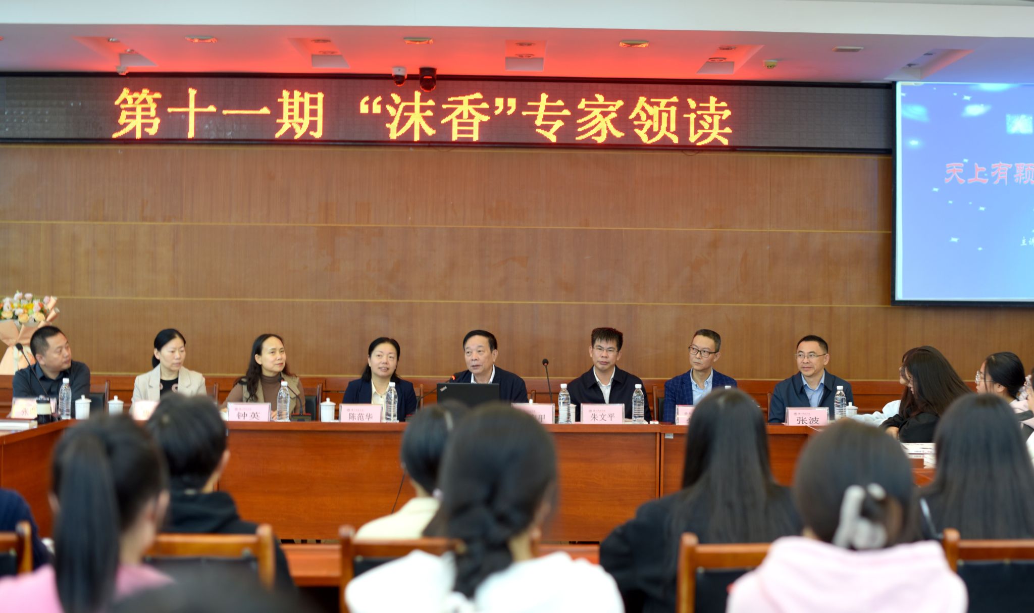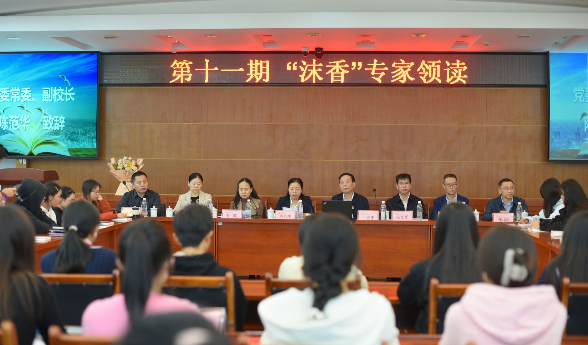 本网讯(文/黄春英 图/何岚)10月11日下午,乐山师范学院图书馆、档案馆成功举办了第十一期“沫香”专家领读活动。本次活动特邀当代文学家、著名学者、中国作家协会报告文学委员会副主任王宏甲先生担任领读嘉宾,学校党委常委、副校长陈范华,党委宣传部、统战部副部长唐书怡,北京华景时代文化传媒有限公司董事长朱文平,新华文轩阅读服务事业部乐山市公司副总经理孙健,图书馆、档案馆全体党员教职工以及来自全校的100多名师生文学爱好者参加了本次活动,活动由图书馆、档案馆馆长钟英主持,乐山市融媒体中心做了专题采访报道。