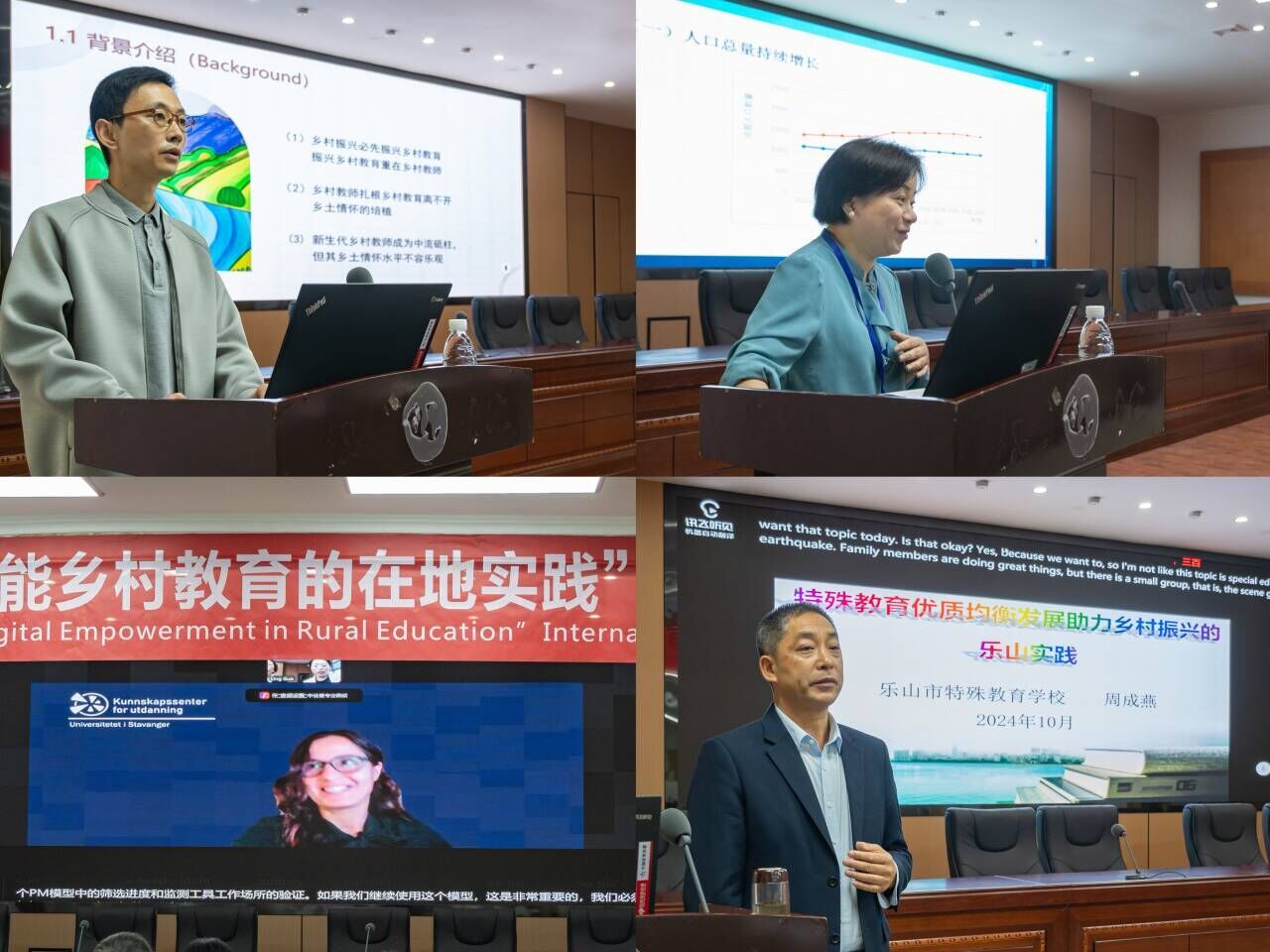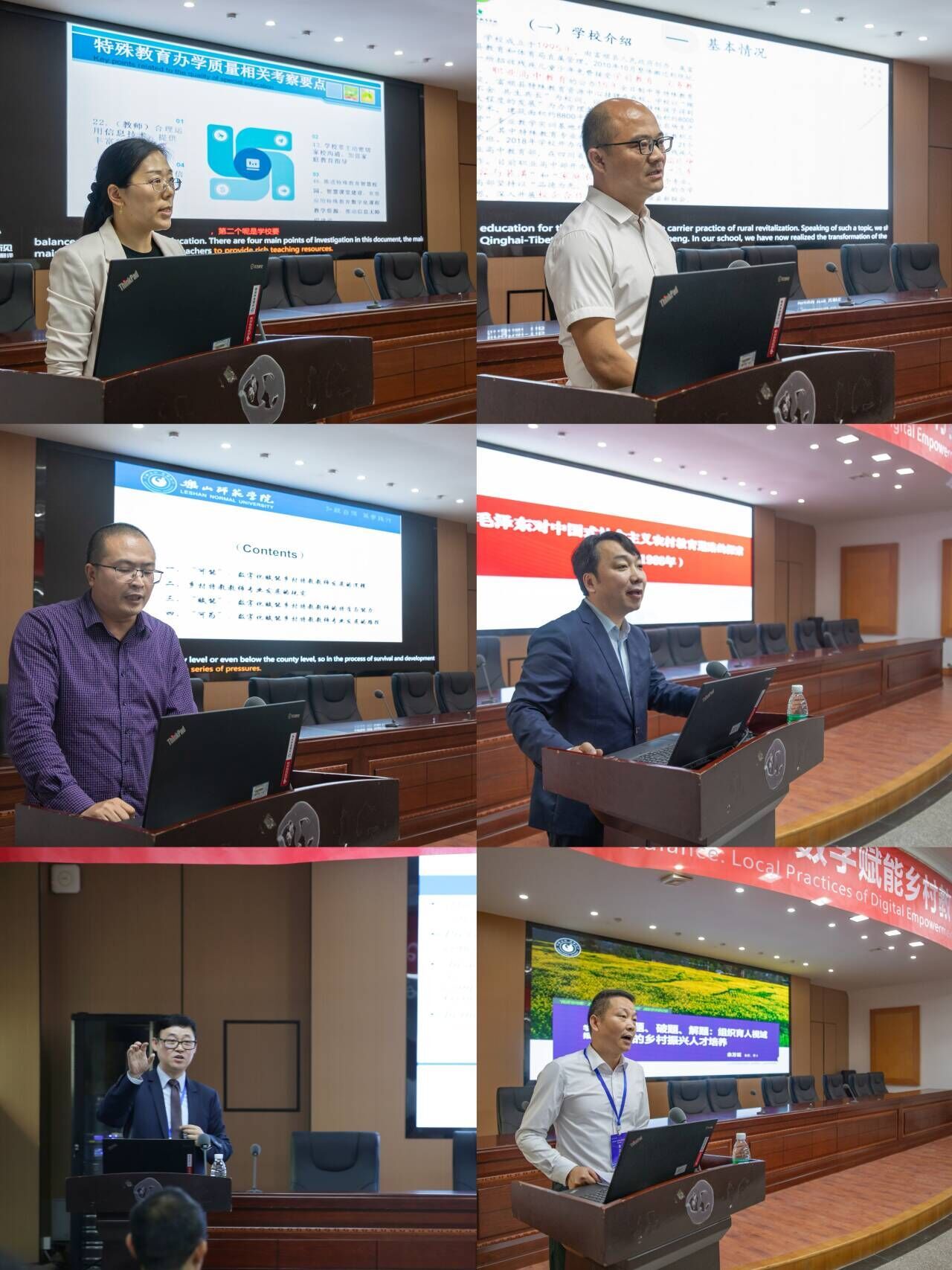 会上,泰国班颂德昭帕亚皇家大学的提蒂亚·克洛班西亚教授作题为《利用数字技术加强在泰国农村教育学习的模式研究》的报告。成都师范学院教育与心理学院院长刘小强教授以《高质量乡村教师配置激励机制探讨》为题,从乡村教师配置中的主要主体入手,先后讲述了乡村高质量教师配置几个主体激励问题和政府乡村教师配置权力偏向运行的原因。内江师范学院教育科学学院院长胡志金教授以《乡村教育的生态主义哲思》为题,强调了乡村教育生态化的重要性。泸州职业技术学院心理发展指导中心主任付先全教授在《川南地区乡村中小学教师心理健康状况调查研究》报告中指出,通过一定数据的统计与研究,发现川南地区教师的心理健康水平低于全国一般成人人均水平,并作出了相关原因的阐述。乐山师范学院教育科学学院的陈谢平博士以《新生代乡村教师的乡土情怀研究》为题,从乡村振兴,乡村教育和教师乡土情怀关系出发,点出新生代乡村教师乡土情怀意识薄弱。成都师范学院教育与心理学院的郑子莹博士在报告《人口变化趋势下农村学前教育资源配置的供需变化与挑战--以成都为例》中通过几组数据图向大家展示了人口变化趋势下随教育资源配置变化而来的各种矛盾,以及在此背景下农村学前教育发展的困境。挪威斯塔万格大学赛拉普·凯尔斯博士,作题为《教育领域的系统综述——一个融合教育荟萃分析案例》的报告,报告了三级干预模式下教师筛选和学生进步监测评估的荟萃分析。她通过这个研究案例介绍系统综述研究的内涵、重要性、主要类型、基本步骤、并介绍其主要研究结果。乐山市特殊教育学校校长周成燕教授在报告《特殊教育优质均衡发展助力乡村振兴的乐山实践》中分享了乐山特殊教育解决残疾人相关问题,推动乡村振兴的实践经验。乐山师范学院特殊教育学院的郭玲博士做了题为《有质量的公平——四川省民族地区特殊学校家校合作的研究与实践》的报告,她提出通过技术助力名族地区特殊教育家校合作的新思路。富顺特殊教育学校校长胡健教授在报告《残疾人职业教育助力乡村振兴的在地实践》的报告中,分享了富顺特殊教育学校在残疾人职业技能培养的宝贵经验。乐山师范学院特殊教育学院的梁剑博士做了题为《可能与可为:数字赋能乡村特殊教育教师专业发展的逻辑与路径》的报告,他深入分析了数字化赋能乡村特殊教育教师发展的逻辑,与可能性。西南科技大学蒋平教授作题为《毛泽东对中国式社会主义农村教育道路的探索》的报告,他深入剖析了教育改革实践存在的问题,并分享了总结的经验与启示。加拿大曼尼托巴大学刘鹏博士作了题为《国际薄弱学校领导力研究及对中国薄弱学校教育领导的启示》的报告,他从历史沿革的角度分析了国际薄弱学校领导力研究的总体趋势,并且对中国薄弱学校特别是农村薄弱学校的改进提升提出建议。乐山师范学院教育科学学院佘万斌教授作题为《问题、破题、解题:组织育人视域下的乡村振兴人才培养》的报告,他从乡村振兴人才培养实践的角度切入,立足于“组织育人”视角,探讨了乡村振兴人才面临的困境,乡村振兴人才培养问题以及如何破题,乡村人才培养的实践解题,剖析乡村人才问题,提出乡村人才振兴的破题之法。