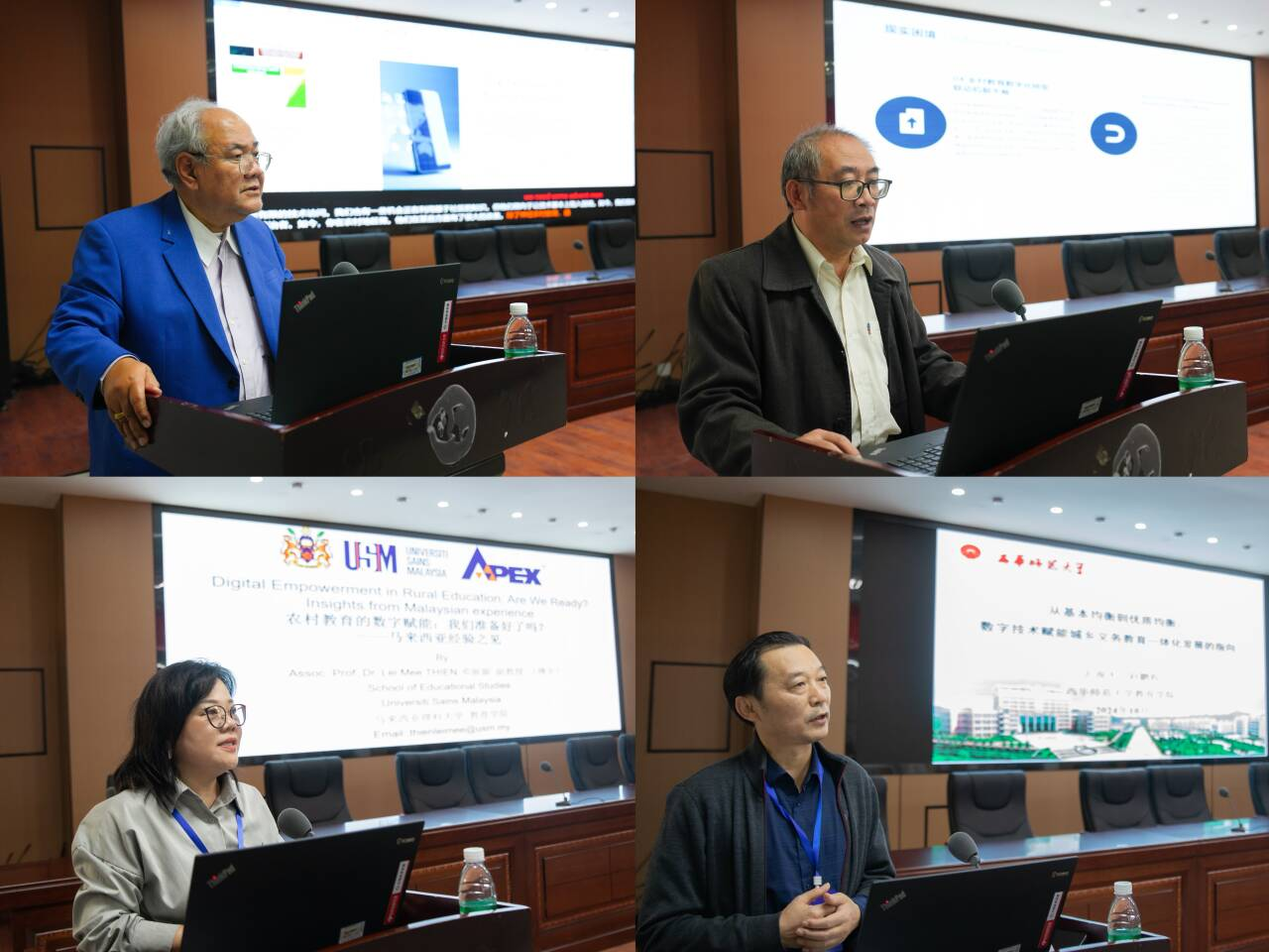 在专家报告环节。泰国班颂德昭帕亚皇家大学校长顾问宋巴特·提卡萨普博士作了题为《数字时代的地方智慧与农村教育》的报告。他就如何将地方智慧融入农村教育与如何助力农村社区应对数字安全方面的挑战这一问题展开了分享与交流。宋巴特·提卡萨普博士倡导在课程中加入更多地方知识,以培养文化自豪感、实现个性化学习以及促进社区参与,通过有意识的实施,教育能够将地方智慧传递给新一代,在保障其延续的同时,也为农村青年适应现代世界做好准备。四川师范大学四川文化教育高等研究院院长、博士生导师杜学元教授作了题为《乡村教育数字化转型的现实困境、生成逻辑与出路》的报告。他从乡村教育数字化转型的研究背景、现实困境、生成逻辑和出路探寻角度出发,强调乡村教育数字化转型的重要性和必要性。马来西亚理科大学邓丽媚博士作了题为《农村教育的数字赋能:我们准备好了吗?--马来西亚经验之见》的报告。她从马来西亚数字教育政策、数字教育发展的原因和现状分析马来西亚当下的机遇与挑战,呼吁国内外重视数字赋能乡村教育的发展。西华师范大学教育学院原管理学院院长赵鹏程教授作了题为《从基本均衡到优质均衡:数字技术赋能城乡义务教育一体化发展的指向》的报告。他从当今时代背景、优质均衡与基本均衡的区别、城乡义务教育一体化发展的内在意蕴和政策变迁、数字技术赋能城乡义务教育一体化发展的实践路径等方面为我们介绍了数字技术赋能城乡义务教育一体化发展的指向。
