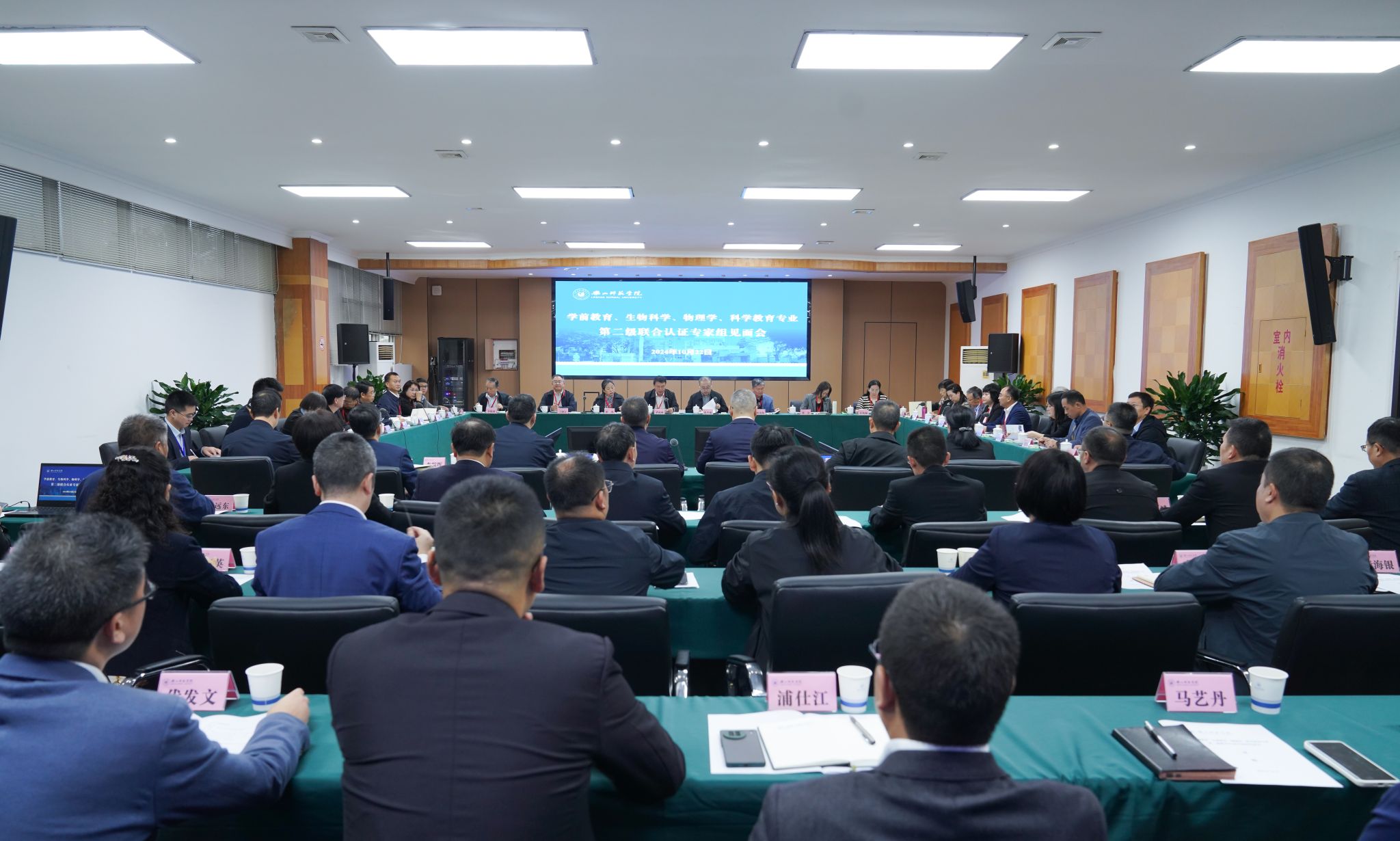 见面会上,梁福成教授就现场考查作必要说明。他说,习近平总书记在全国教育大会上指出,要实施教育家精神铸魂强师行动,加强师德师风建设,提高教师培养培训质量,培养造就新时代高水平教师队伍。此次专家组进校考查是通过全国师范类专业认证工作实施2023版的新要求引导师范类专业认证工作,坚守服务师范教育内涵发展初心,聚焦师范生能力素养评价核心问题,强化证据导向的认证模式,切实发挥认证以评促建、以评促改、以评促强的作用。专家组将通过深入访谈、听课看课、查阅资料、走访座谈等方式对学前教育、生物科学、物理学、科学教育专业人才培养情况进行全面评估,专业、透明、高质量地完成现场考查工作。