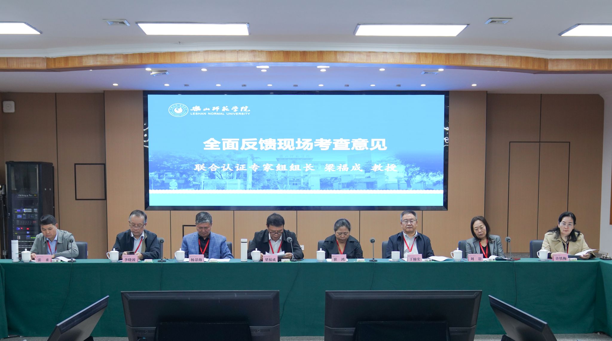 梁福成教授代表联合认证专家组反馈了考查总体印象。他说,乐山师范学院依托乐山深厚的文化底蕴,坚持“地方性、师范性、应用型”办学定位,秉承“弘毅自强、笃学践行”的校训,坚守师范本色,赓续教师教育办学传统和优势,构建起覆盖基础教育全学科全学段的师资培养体系,着力培养适应基础教育改革发展需要的优秀师资。学校高度重视师范生培养和师范类专业认证工作,按照“主线”和“底线”要求,围绕“反向设计”三个目标、“正向施工”三个支撑,以及“底线评价”三个机制认真开展师范类专业对标建设,并取得了明显成效。学校聚焦教师教育,积极推进机构改革,持续加强制度建设;聚焦能力培养,构建了“四四四”实践教学体系和“三级四类”学科竞赛体系,强化师范生实践能力训练,学生创新实践能力培养成效显著;依托国家和省级平台资源,发挥特殊教育优势,积极推进融合教育,“普特融合”的教师教育特色逐步凸显。近年来,师范生参加国家级、省级教学能力竞赛成绩突出,毕业生就业率和高质量就业率明显上升,毕业生中涌现出一大批中小学优秀校长和特级教师、全国教书育人楷模、国家“万人计划”教学名师。
